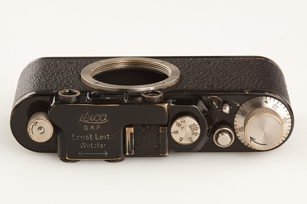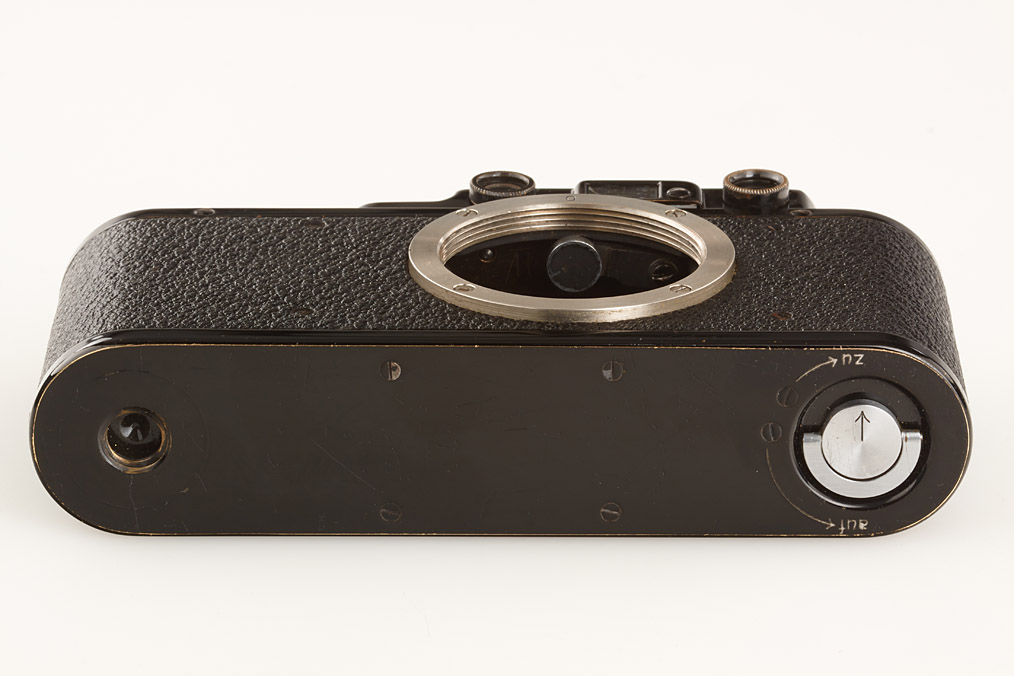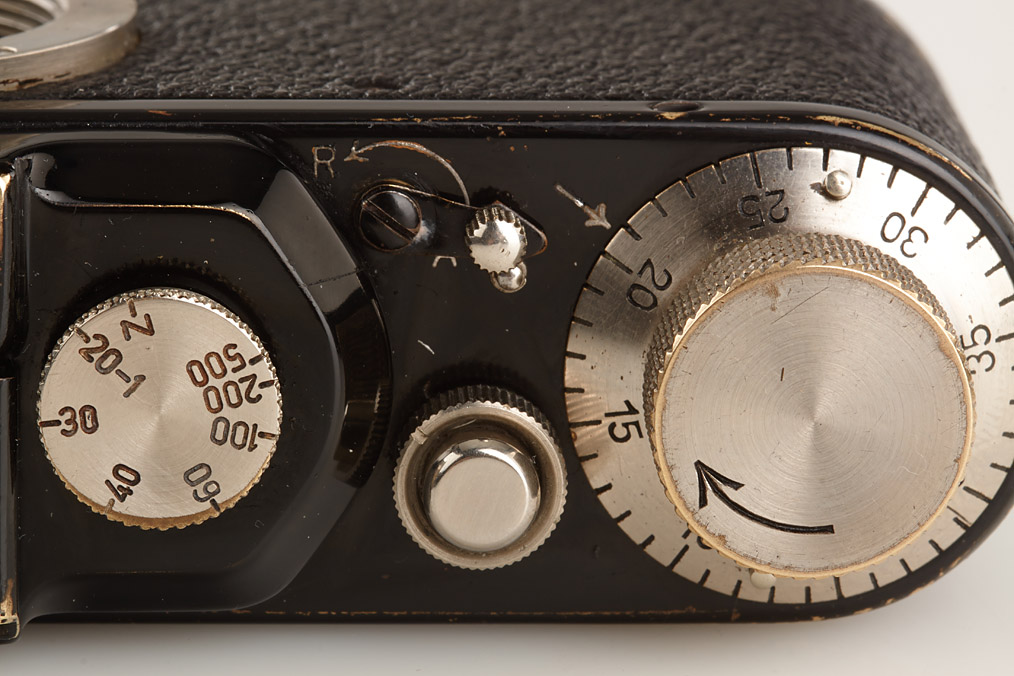 rare body without serial number and 'double-arrow' engraving on top plate to indicate the direction of the shutter, chrome base plate locking key