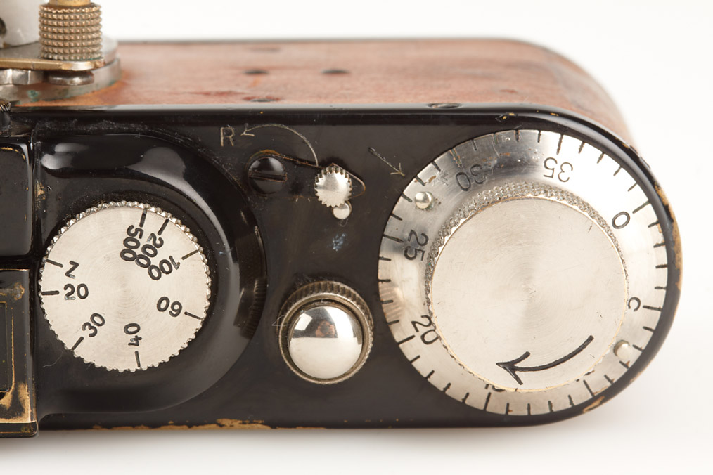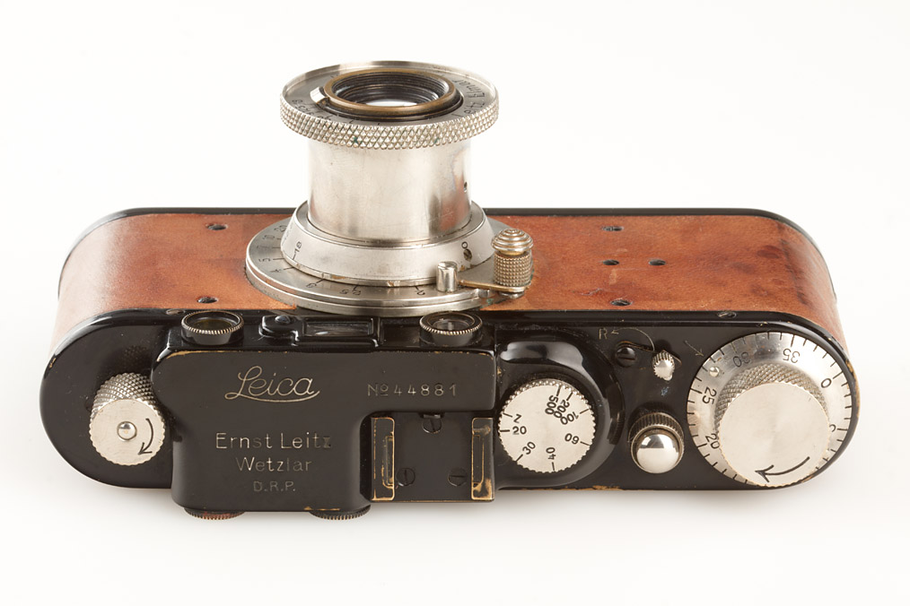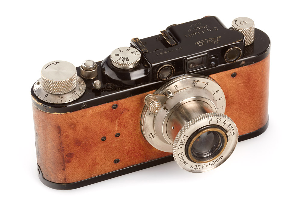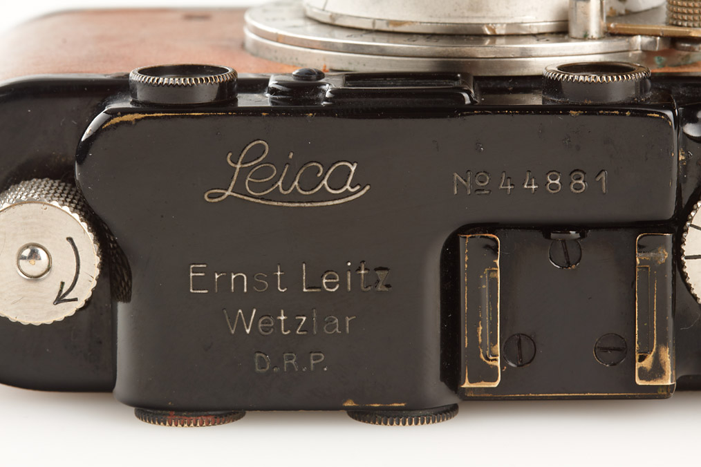 very rare Leica with original calfskin leather covering (see Hahne list), converted into II Mod.D (still with original body shall), in very fine condition, matching un-numbered 11 o'clock nickel Elmar 3.5/50mm, black painted cap