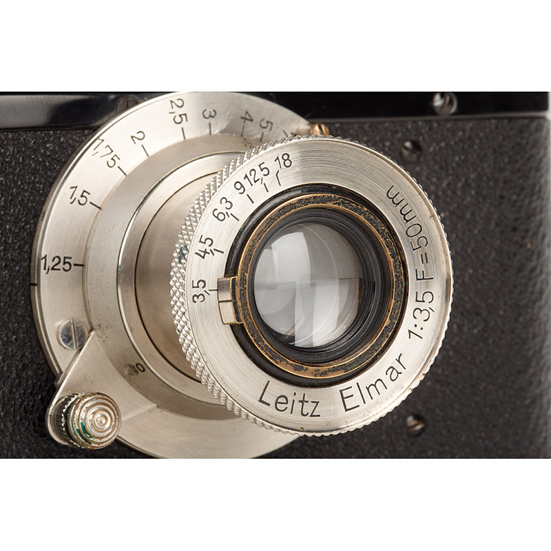 in very fine original and perfect working condition, matching nickel Elmar 3.5/50mm no.143314, everready case