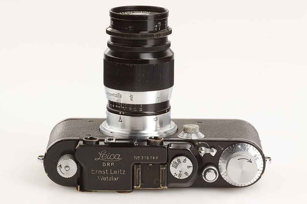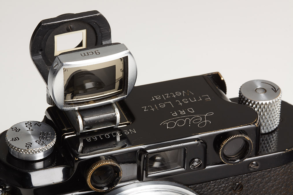 black body with chrome fittings (in good working condition with black/chrome Elmar 4/9cm no.454195, SOOUT 9cm cradle finder and matching FIKUS hood