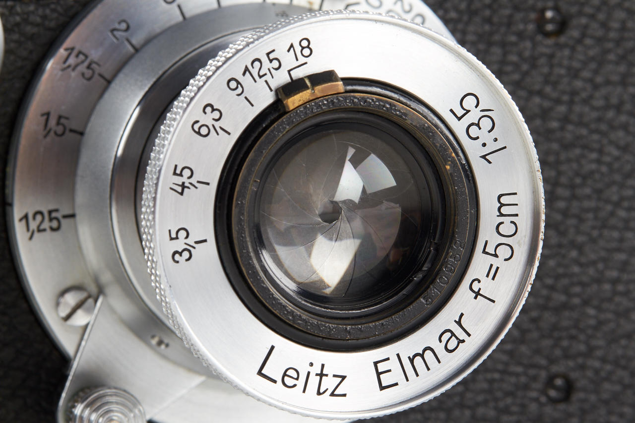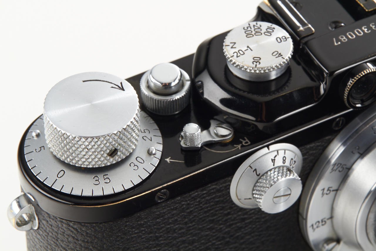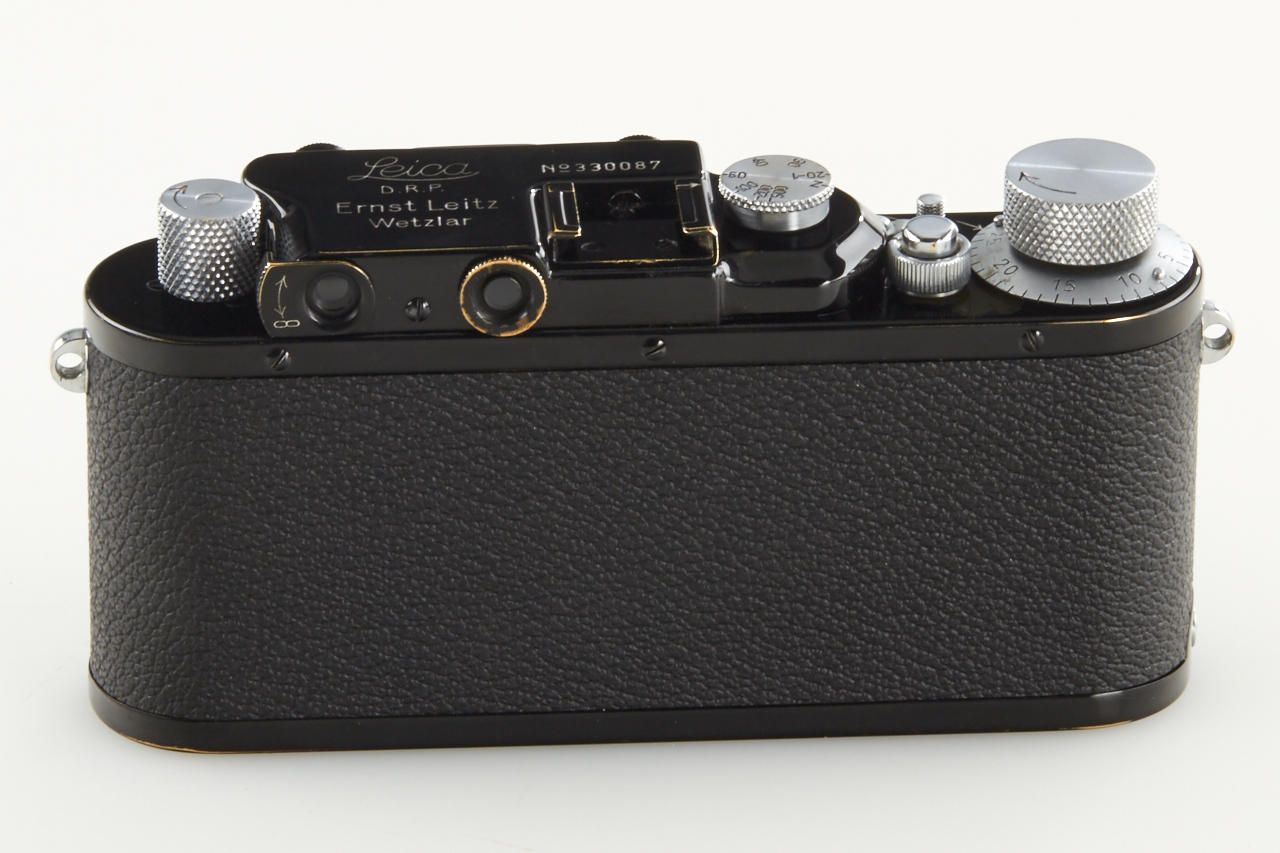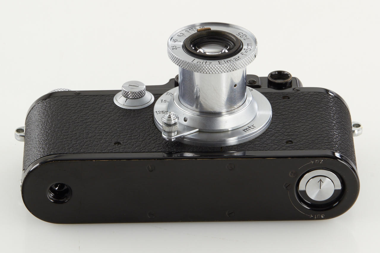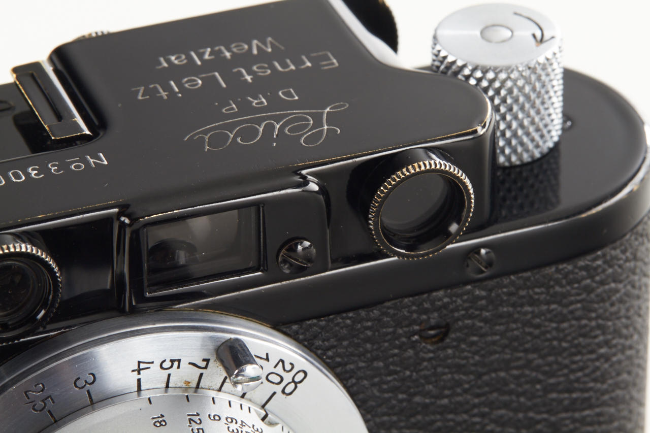 late Leica III in black finish with chrome fittings from the last batch of 300 black cameras made in 1939, in beautiful near mint condition with matching chrome Elmar 3.5/5cm no.510952