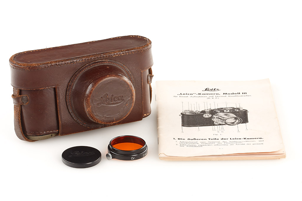 in original condition with Summar 2/5cm no.256786 (orange filter, cap), black ORAKO rangefinder orange filter, everready case, original instructions book