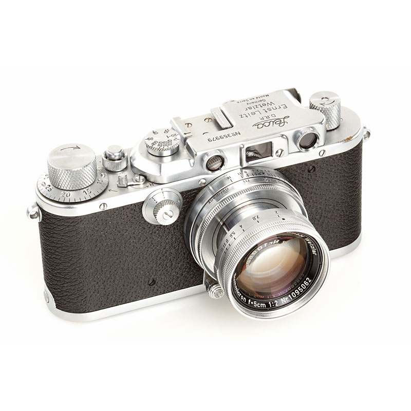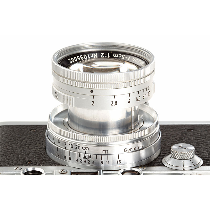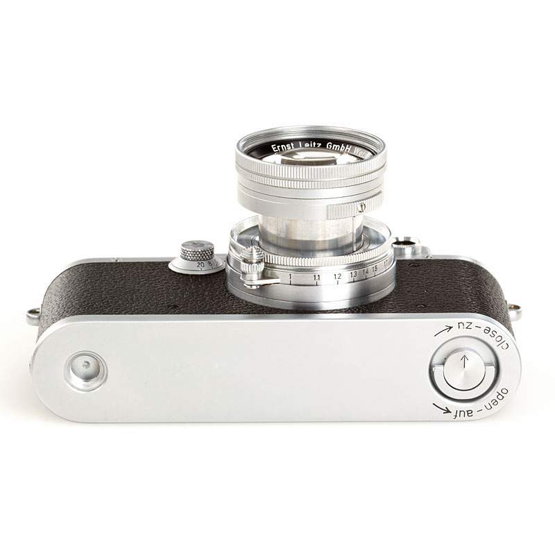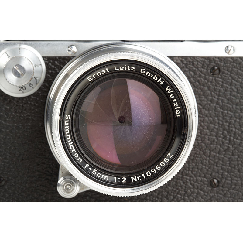 rare original body in good working condition with coll. Summicron 2/5cm no.1095062 (cap, case), top plate with small sync.