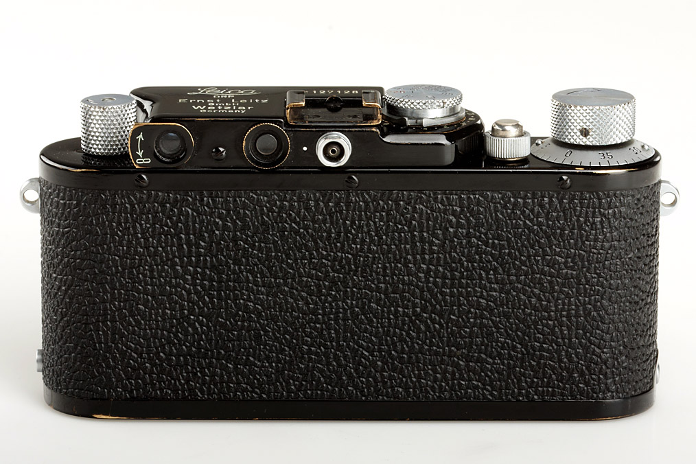 converted Leica III with chrome knobs (nickel slow speed dial), collapsible nickel Summar 2/5cm no.199211, yellow filter 1, everready case