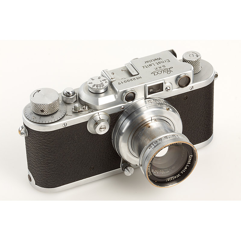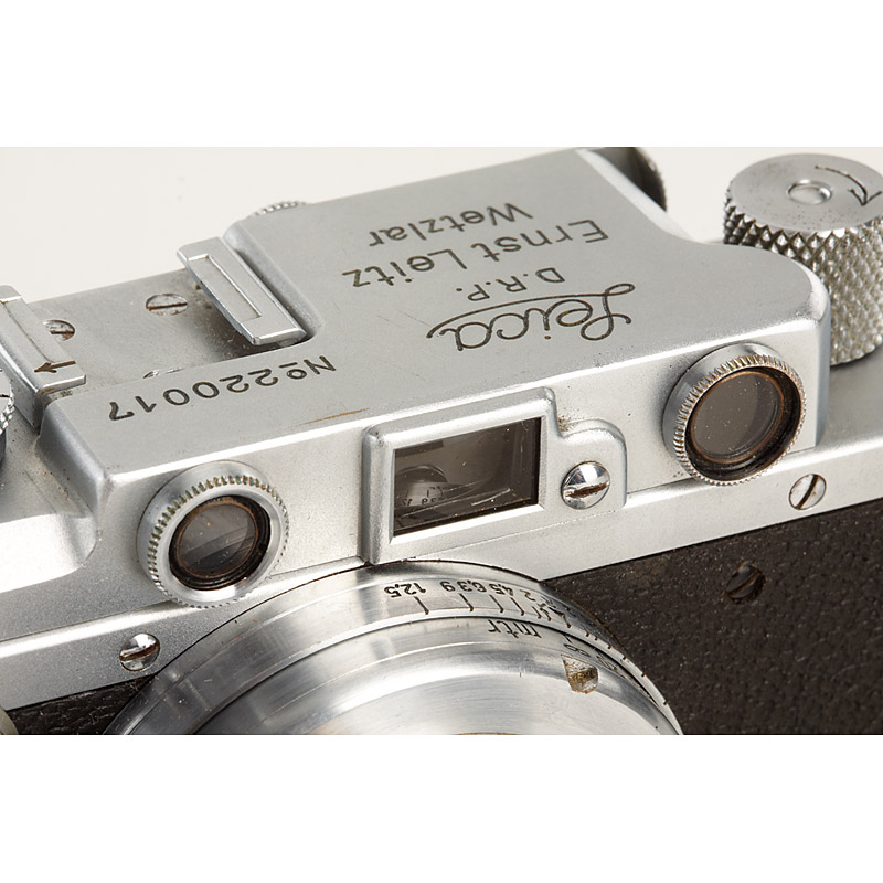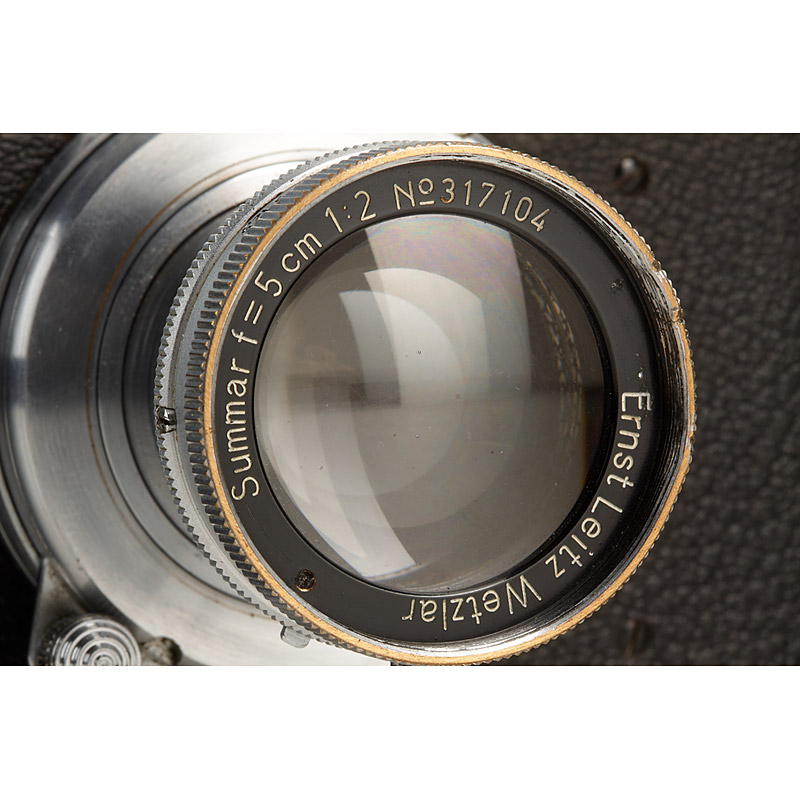 body in good working order, Summar 2/5cm no.317104 (cleaning marks, cap), instruction book (Leitz Gebrauchs-Anleitung Leica-Kamera, Liste Photo Nr.7630a, August 1937), everready case, maker's box for IIIa