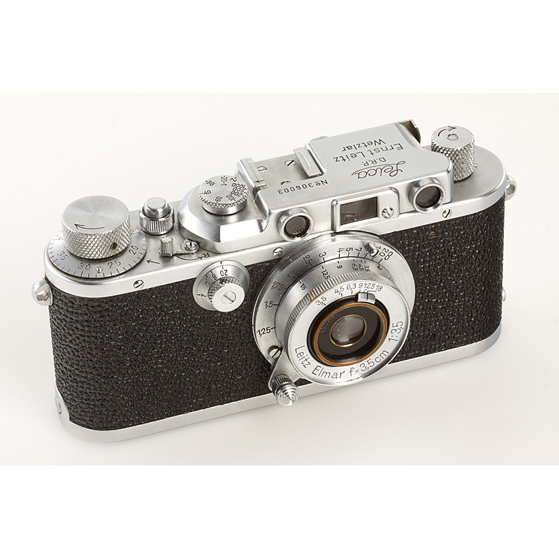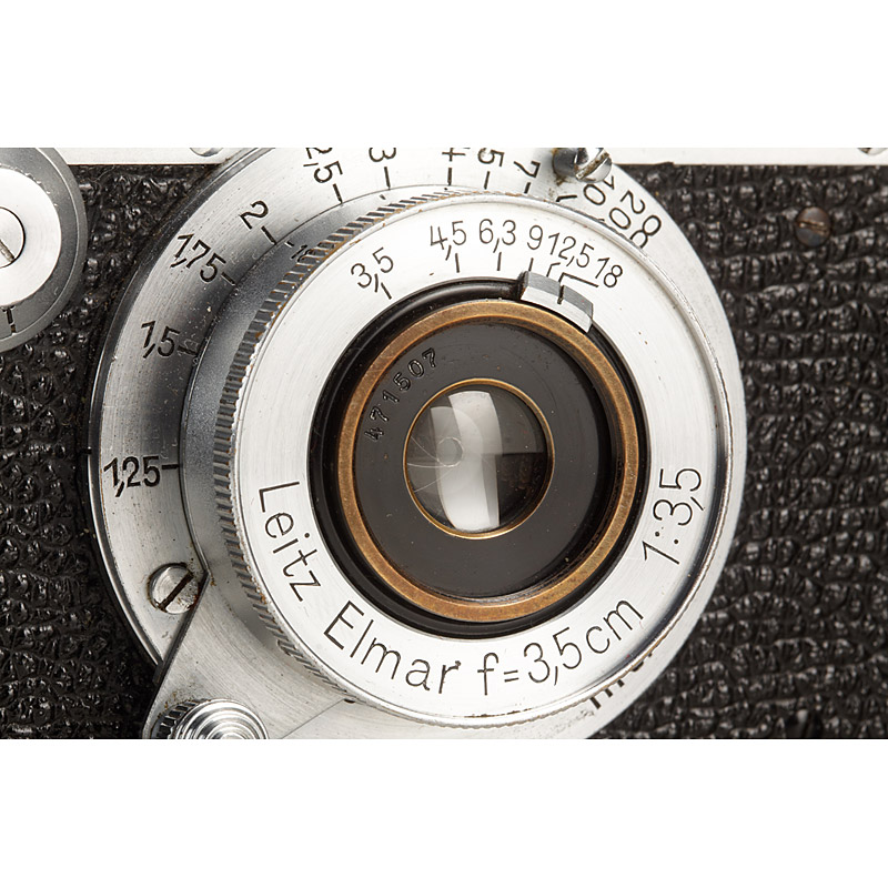 in beautiful condition and good working order, sync. on back, Elmar 3.5/3.5cm no.471507, cap, matching instruction book (Leitz Gebrauchs-Anleitung Leica-Kamera, Liste Photo Nr.7630a, November 1938), Tabellen zur Leica Kamera (Liste Photo Nr.7789, Juli 1938, case