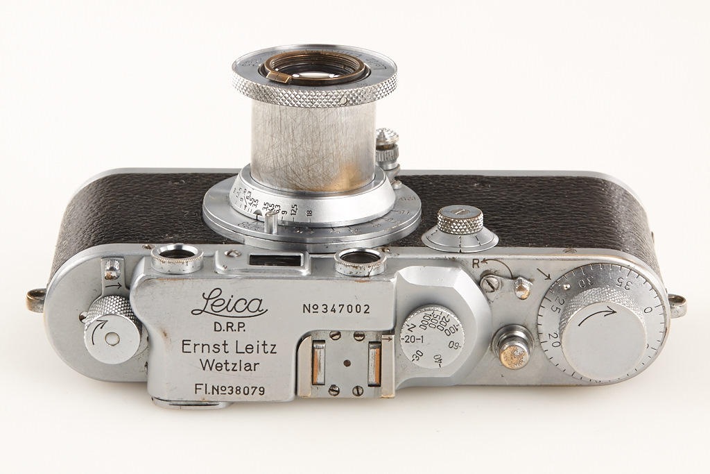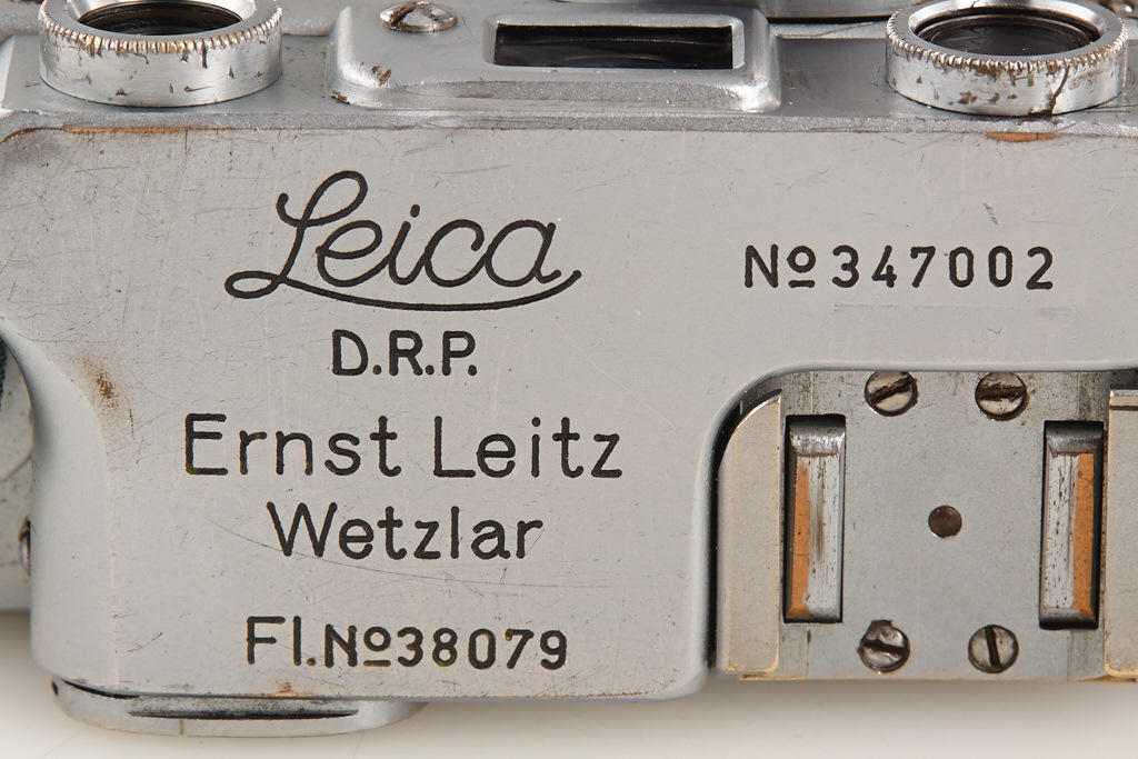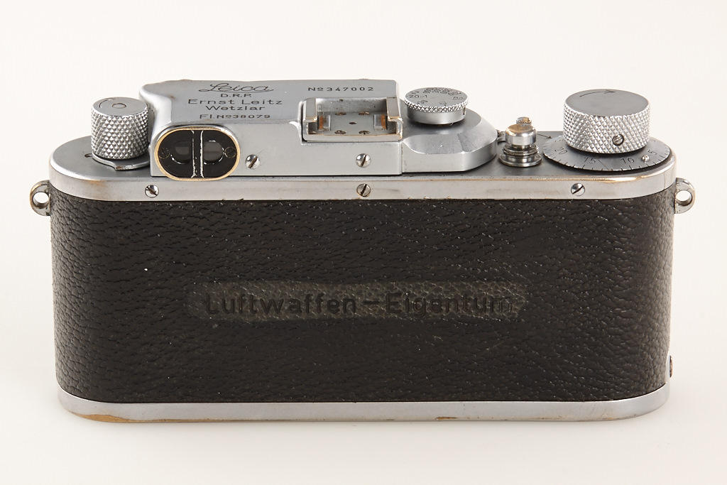 IIIb for German Army, top plate engraved 'FL No.38079', 'Luftwaffen-Eigentum' stamped on vulcanite, with Elmar 3.5/5cm no.533687 (cap), camera delivered as LEYOO to Luftwaffe BLN Berlin on February 26th, 1940 (delivery number 7989) - IIIb military cameras are much rarer than IIIc cameras