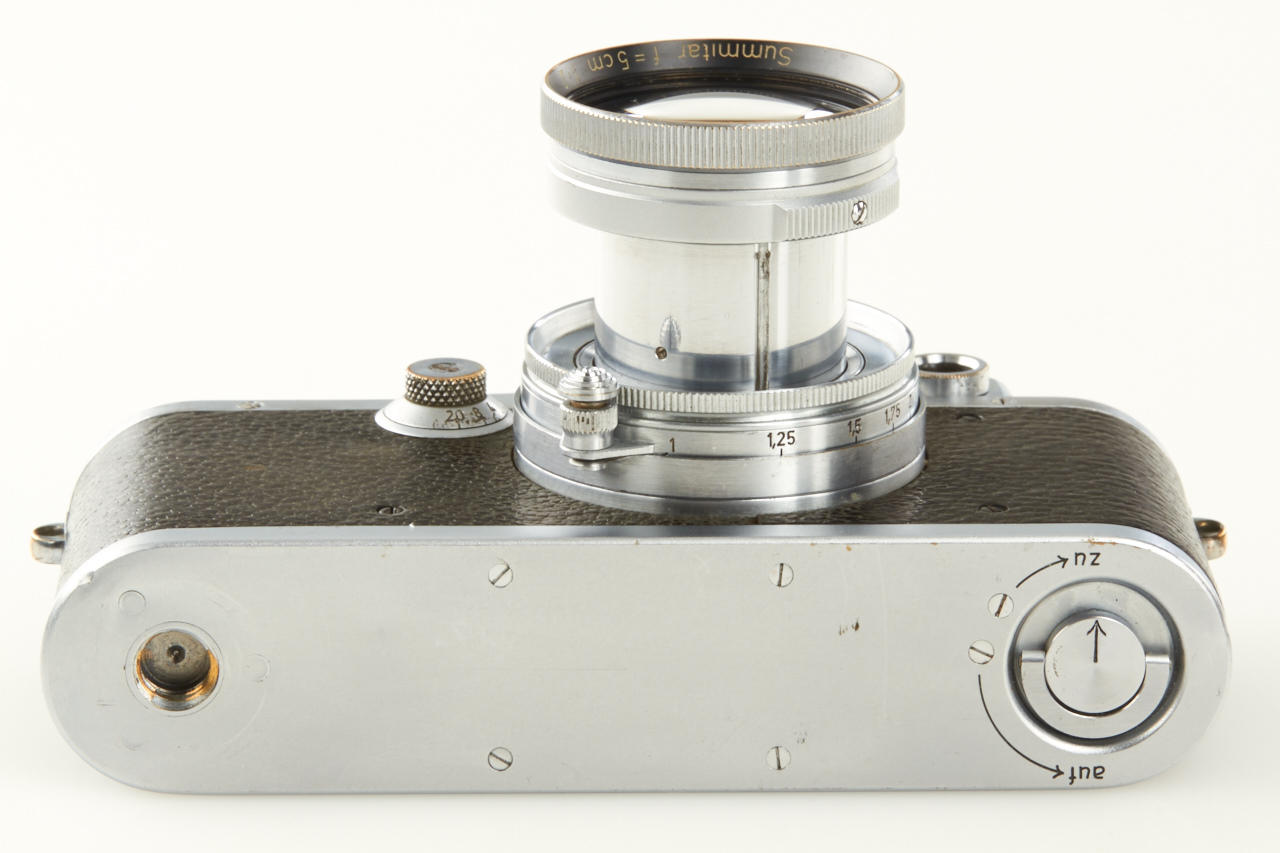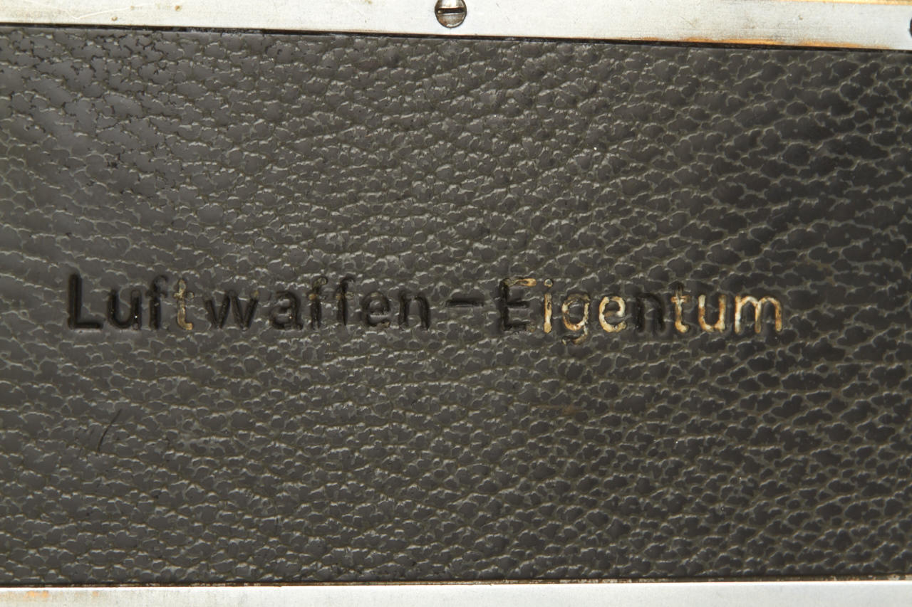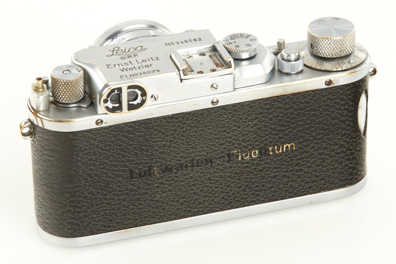 very rare German military camera in used condition (synchronized), engraved 'Fl.No38079' on top-plate, stamped 'Luftwaffen-Eigentum' on the vulcanite (delivered to Luftwaffe Bln. on February 10th, 1940, delivery no.9008), Summitar 2/5cm no.528985 - original set with patina of heavy use during the war