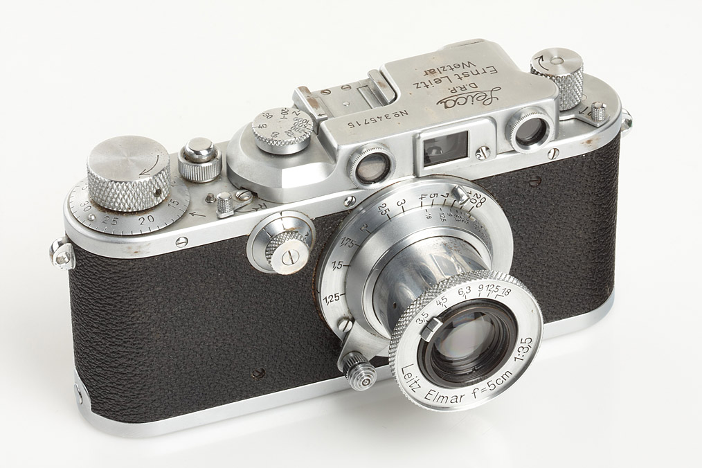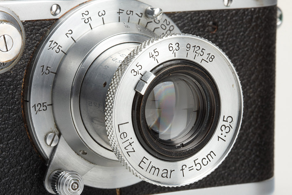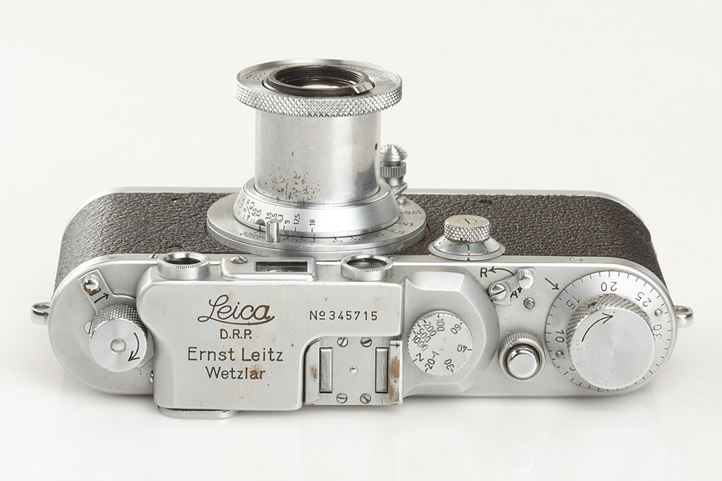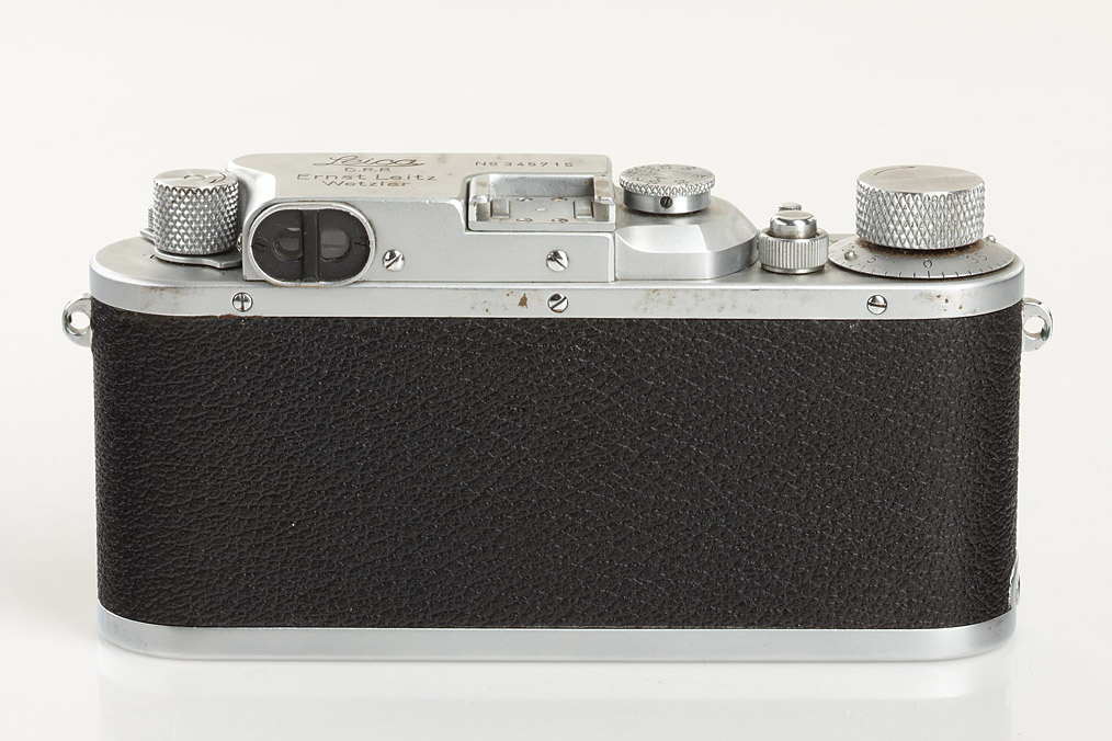 war-time IIIb with Elmar 3.5/5cm no.511710, Elmar 3.5/5cm no.557341 (cond. B+, caps), all-chrome Elmar 4/9cm no.646231 (cond. B+, caps)