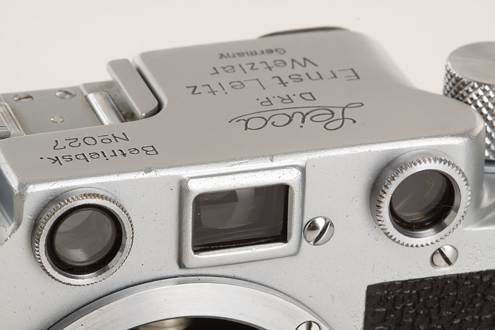 very rare IIIc camera for internal use in chrome lacquer finish, stylized engraved 'Betriebsk. No.027', fully original and in good working order