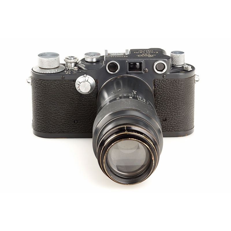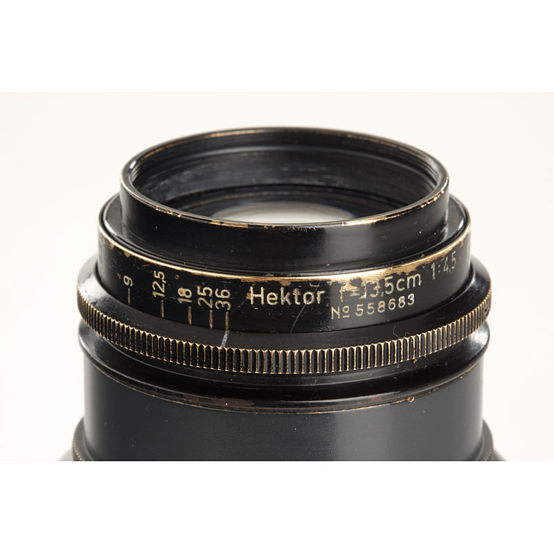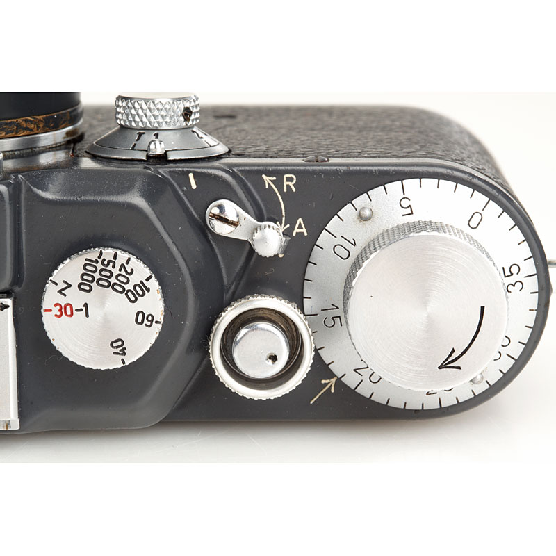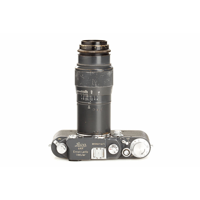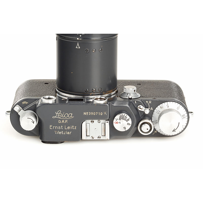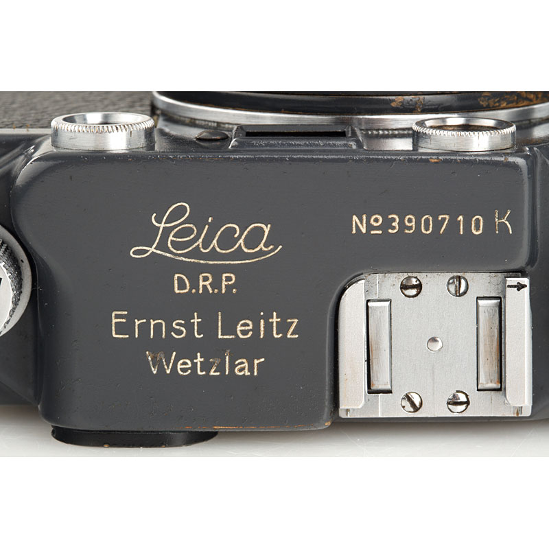 camera in fully original condition (grey leather covering, white K on shutter blind), with extremely rare and fully original grey military Hektor 4.5/13.5cm no.558683 in beautiful (B/A) condition, delivered to BLN Berlin on September 29th, 1941 (delivery number 25858)