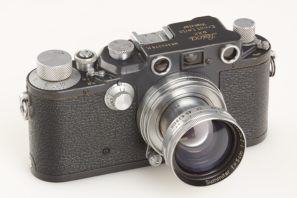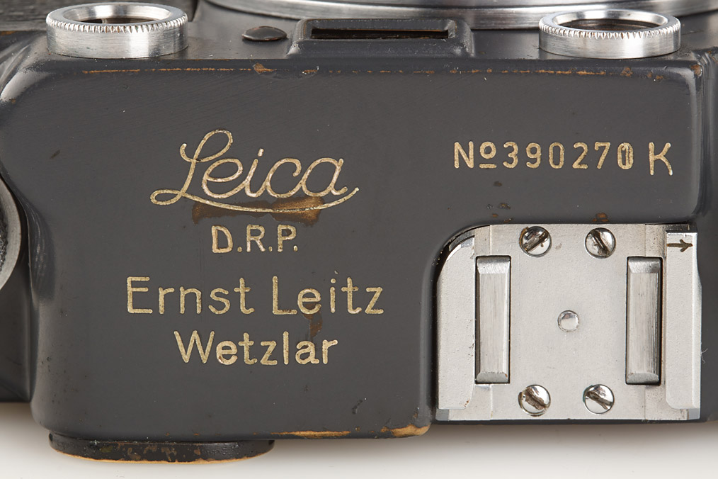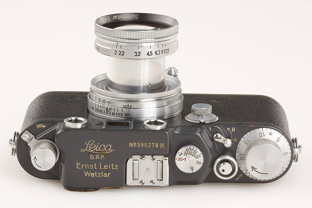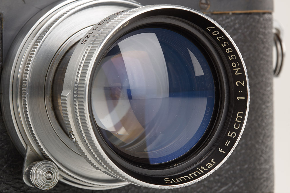 in fantastic, fully original condition, grey leather covering, serial number failure engraving ('0' over '1' engraved), mint Summitar 2/5cm no.585207 with rare black bakelite cap, body delivered on February 1st, 1944 to BLN Berlin (delivery number 9922)