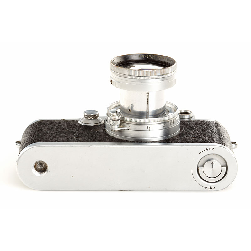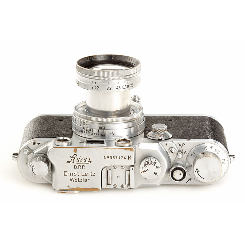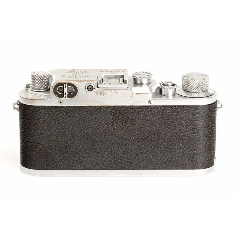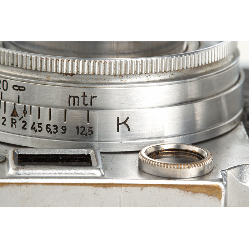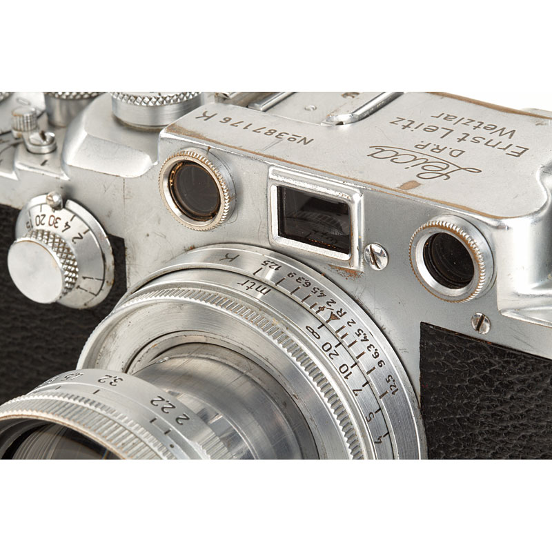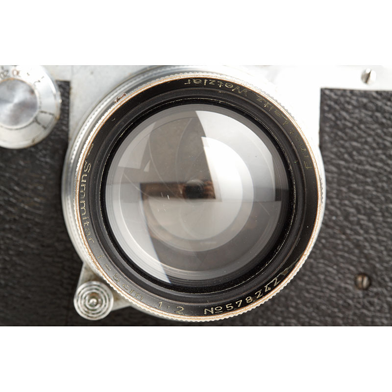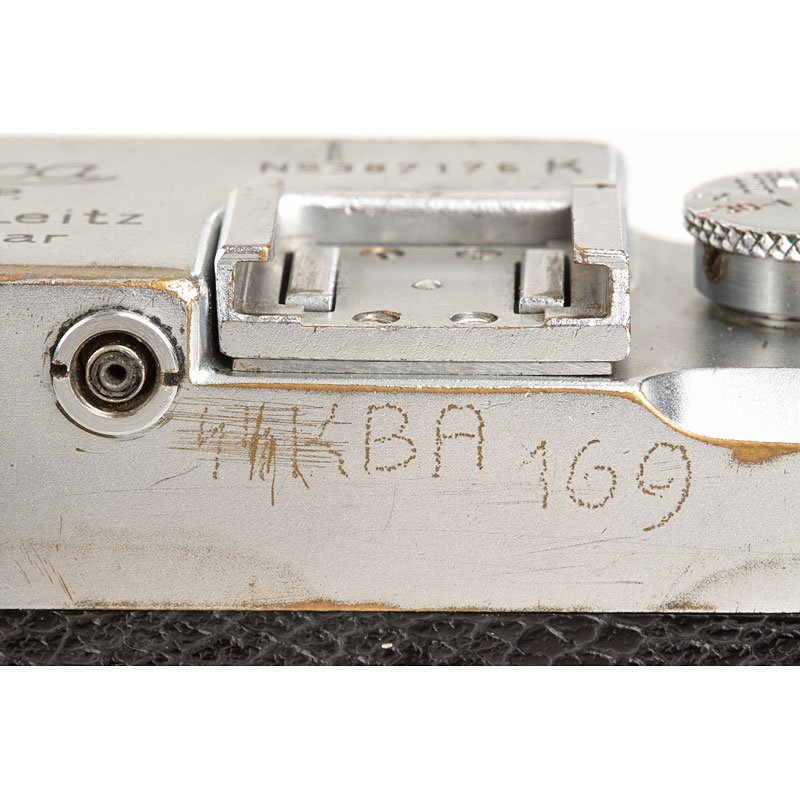 extremely rare original chrome IIIc K, engraved 'K' and hand-engraved 'SS-KBA 169' (Waffen SS war correspondent) on top plate (with original ball bearing shutter, total production only approx. 50 cameras), in 100% original condition, delivered to Berlin (Bln) on September 15th, 1942 (delivery number 29814), with matching Summitar 2/5cm no.578242 engraved 'K' on barrel, delivered to Berlin (Bln) on March 5th, 1942 (delivery number 29491), rare matching black bakelite front cap - similar SS-KBA engravings are illustrated in Lager Vol. I p.89