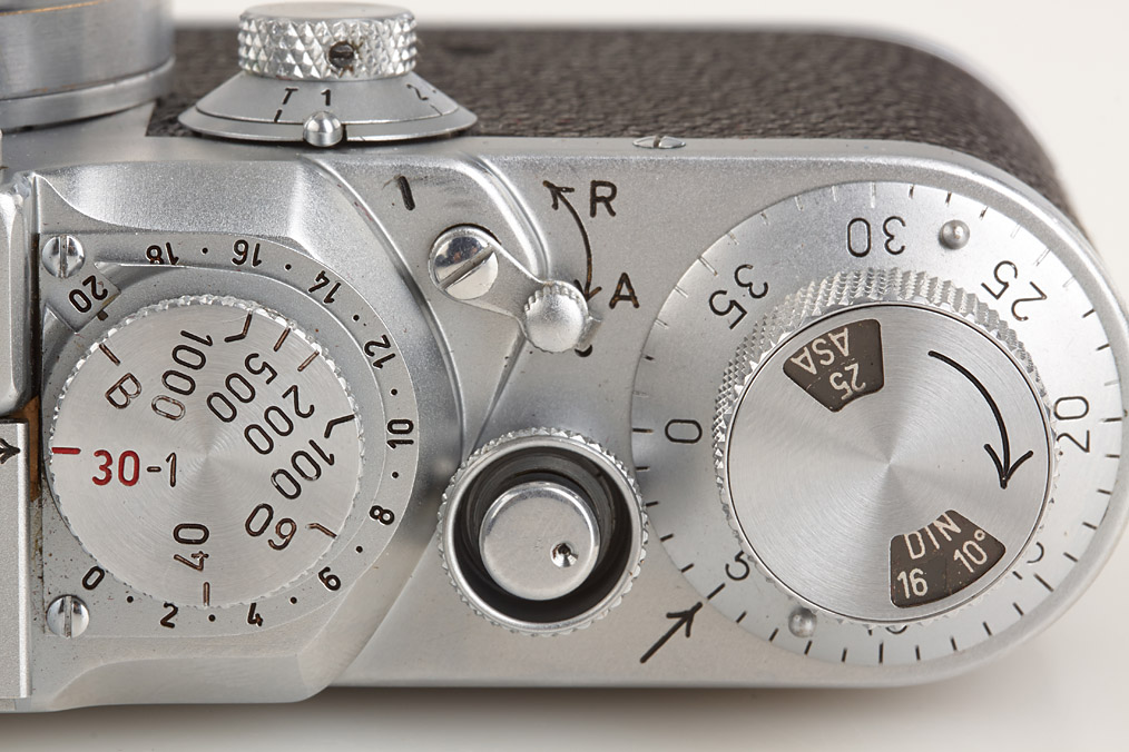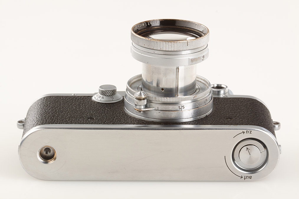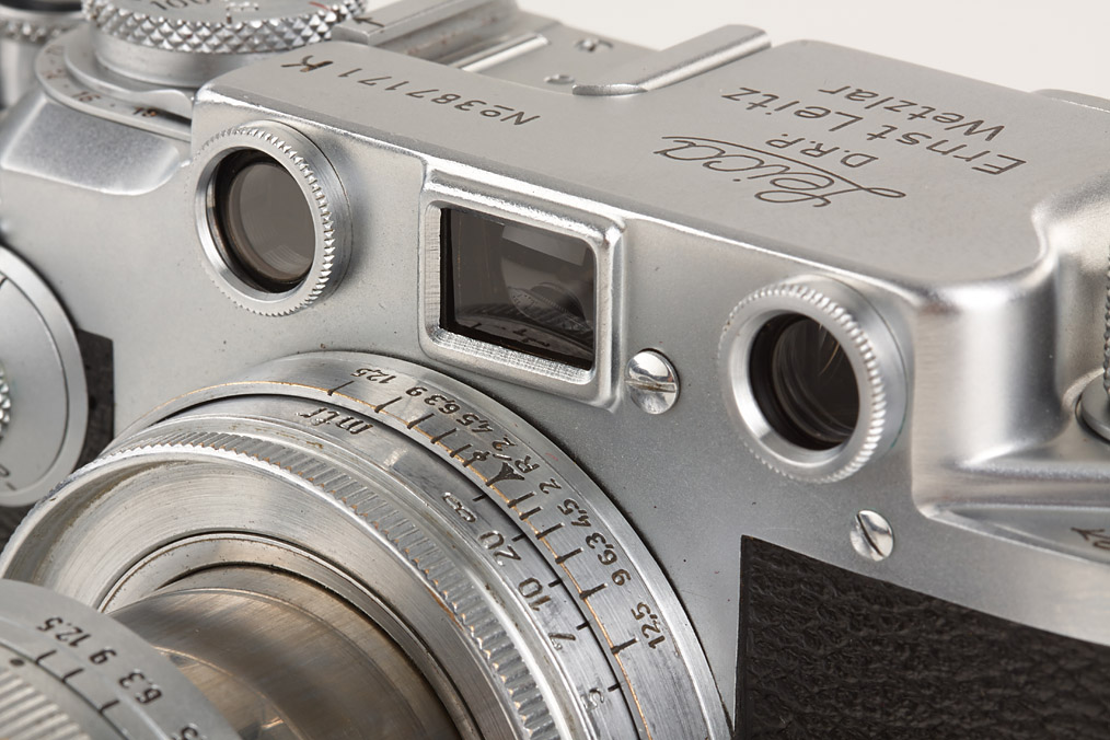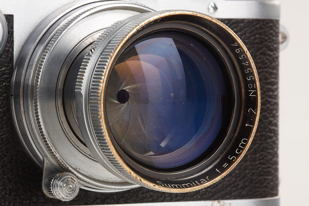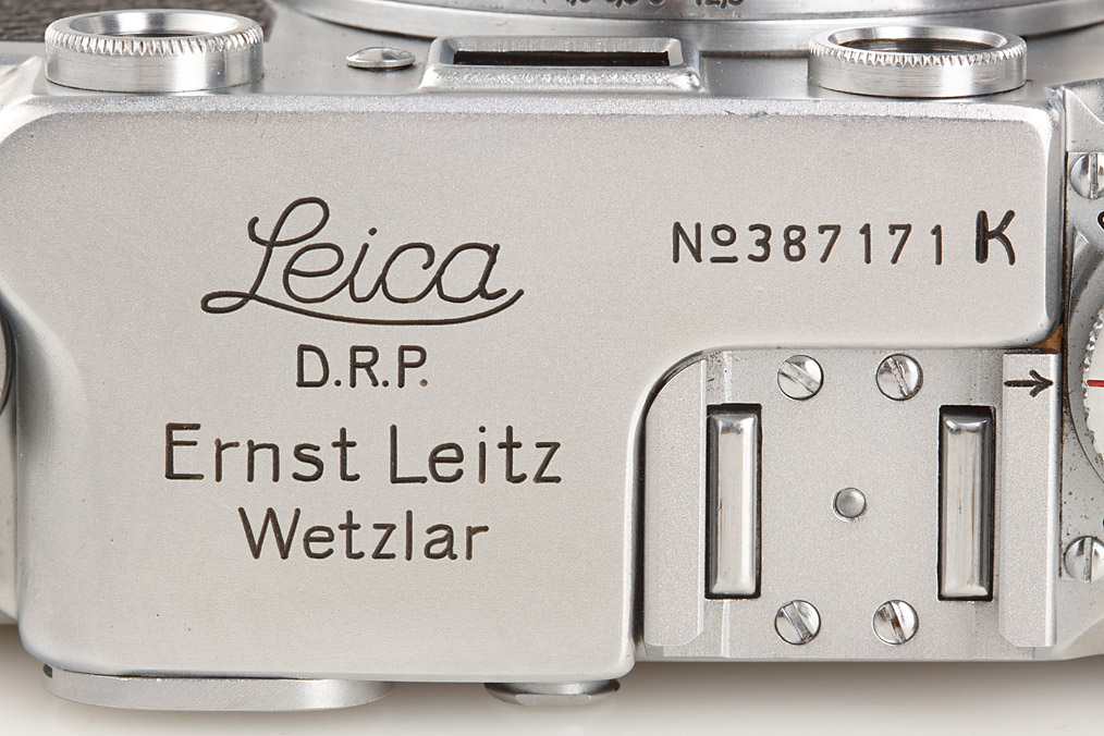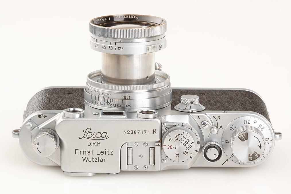 extremely rare chrome IIIc K (engraved 'K' on top plate, with original ball bearing shutter) without military engravings (total production only approx. 50 cameras), in very fine condition (modified to IIIf type), black painted body cap, Summitar 2/5cm no.554594, with brown everready case marked 'Reichsadler and 'WaA217' ('Waffenabnahme Amt'), body delivered on September 15th, 1942 to BLN Berlin (delivery number 29814)