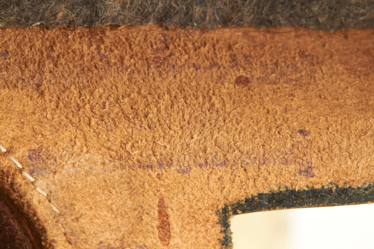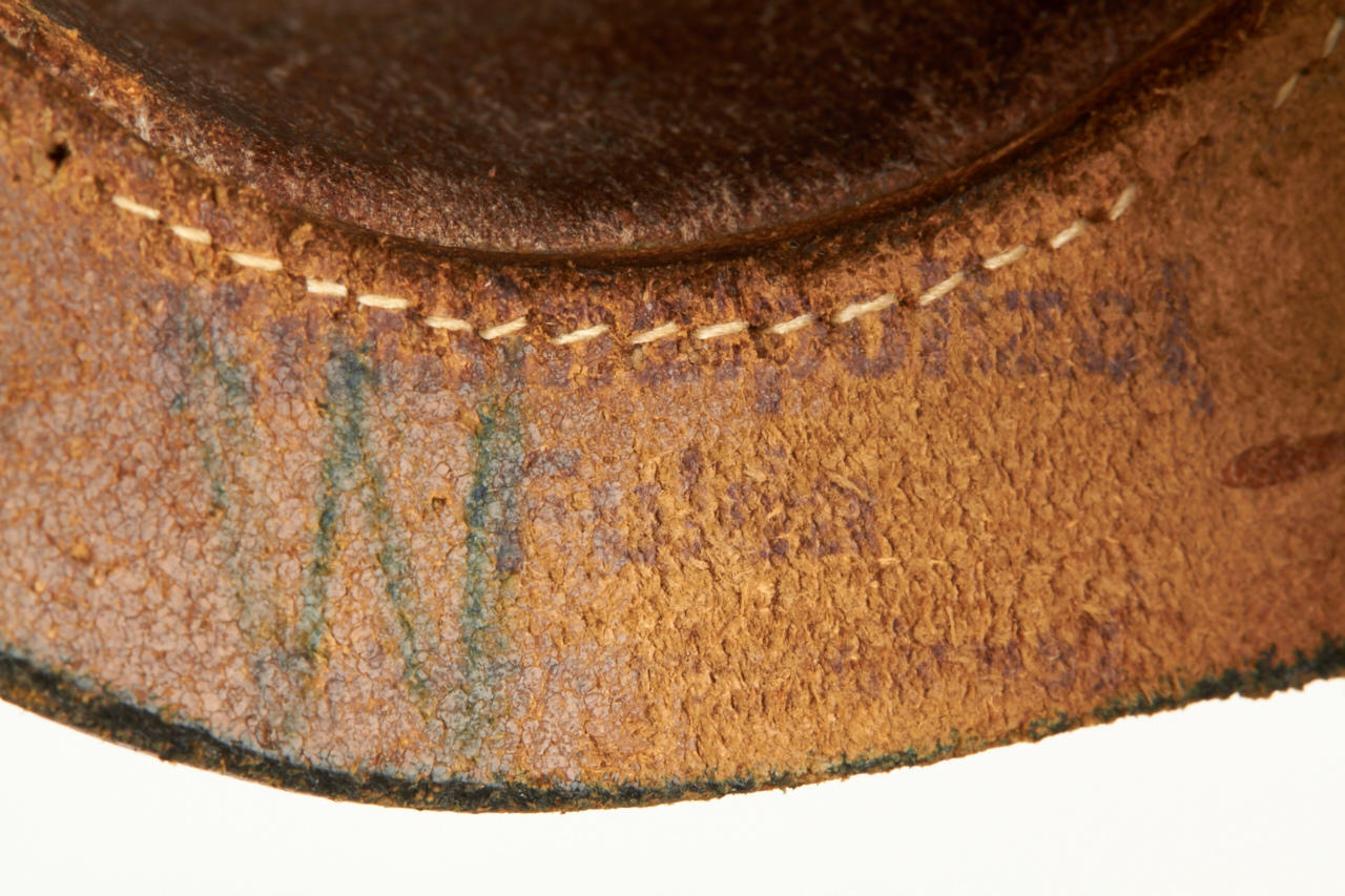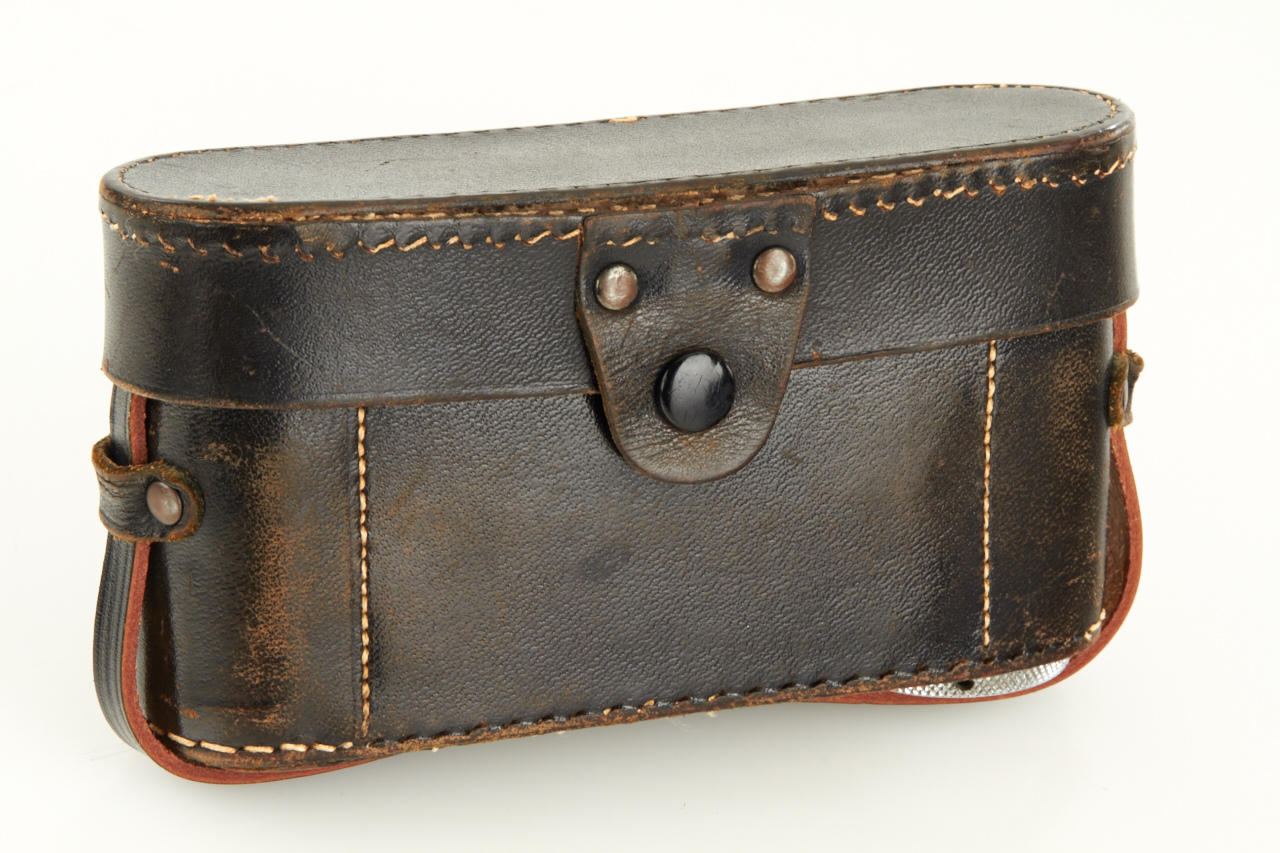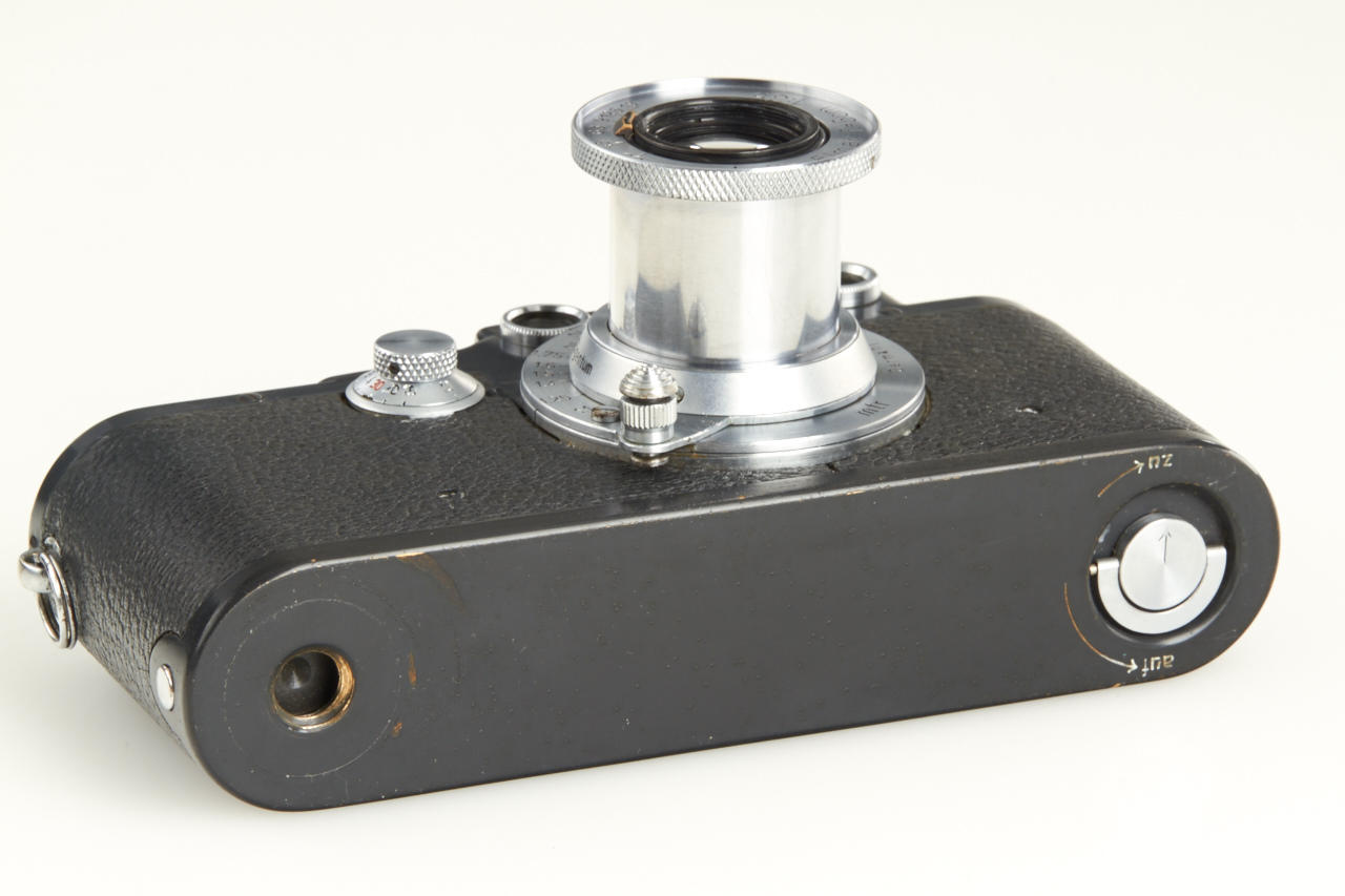rare military IIIc K grey in beautiful, original and perfect working condition, grey leather covering, engraved 'Luftwaffen-Eigentum' and 'FL.No.38079' on top plate, with red 'K' on shutter curtain, Elmar 3.5/5cm no.571433 engraved 'Luftwaffen-Eigentum', camera and lens were delivered to 'Luftwaffe Berlin' on April 3rd, 1943 (delivery number 9681), inclusive grey painted cap and black everready case stamped 'Bundespolizei' (Federal Police) inside