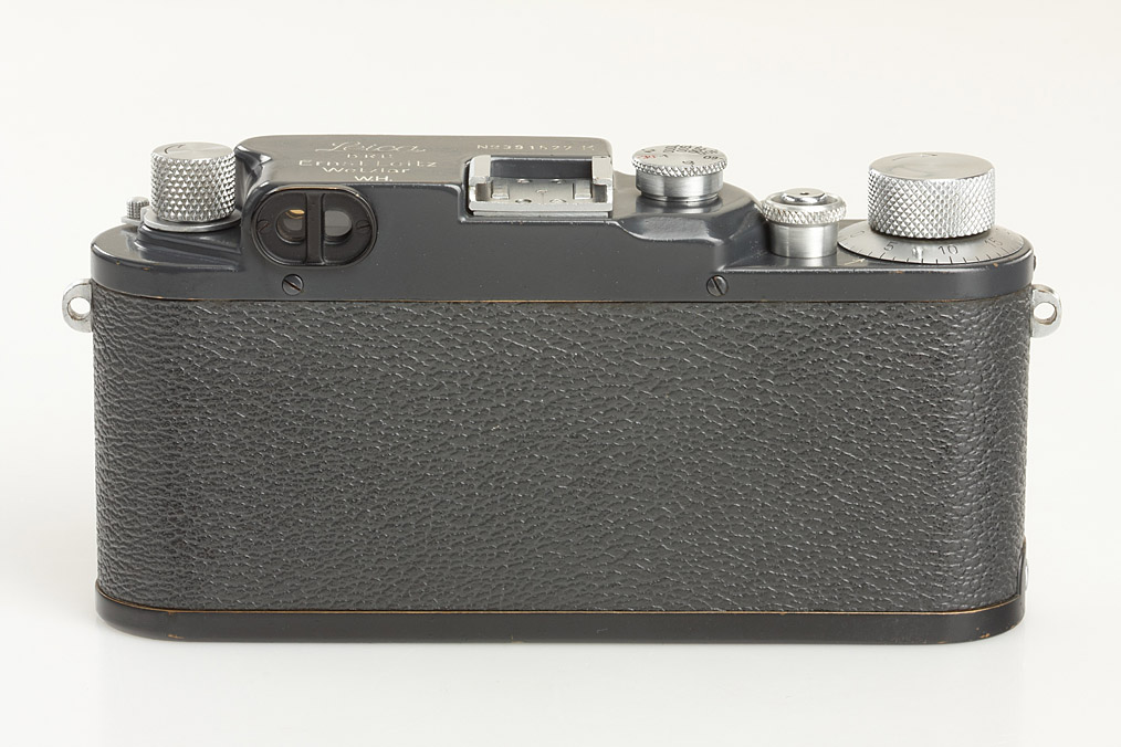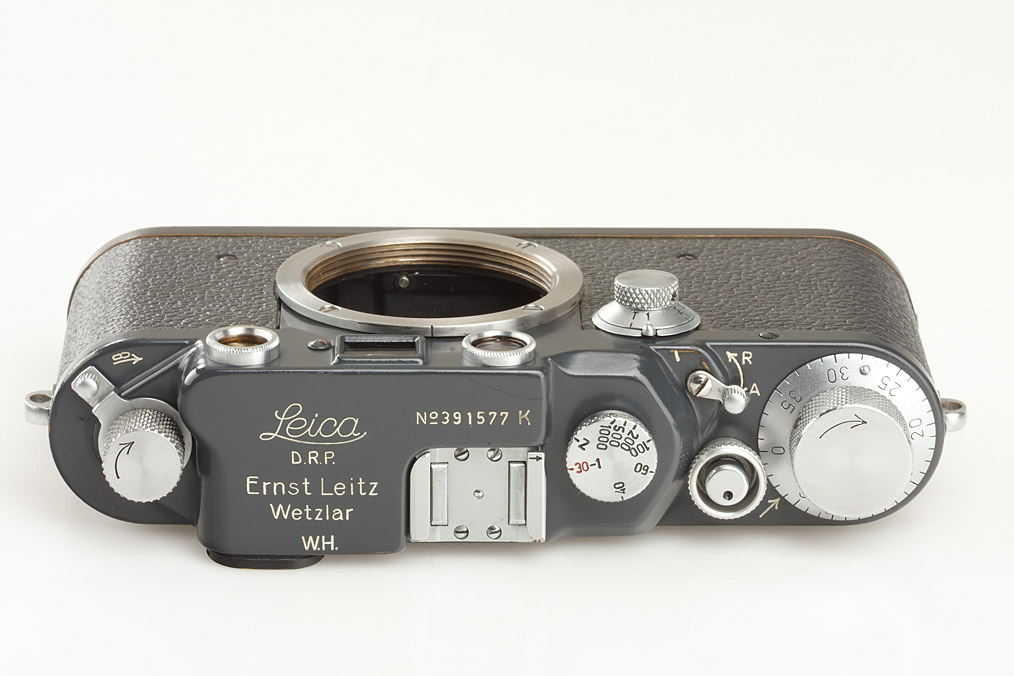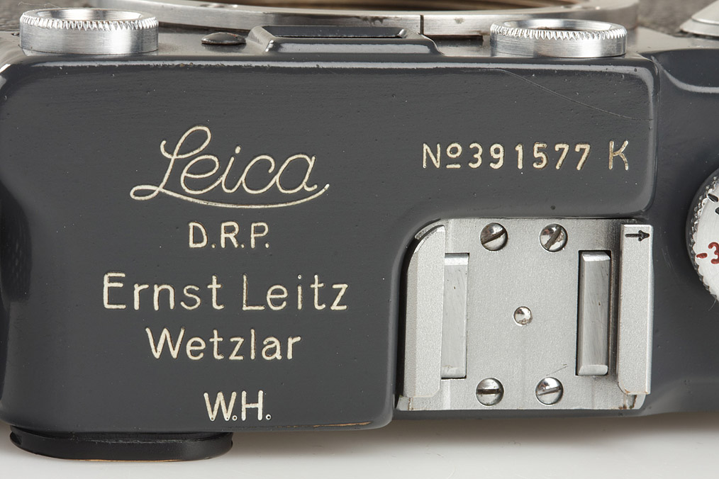 fully original and rare W.H. (Wehrmacht-Heer) camera in very fine original condition - grey leather, grey paint, still with special fiducial points at film plate present (usually these were removed later), white K on shutter blind - rare military camera in beautiful condition