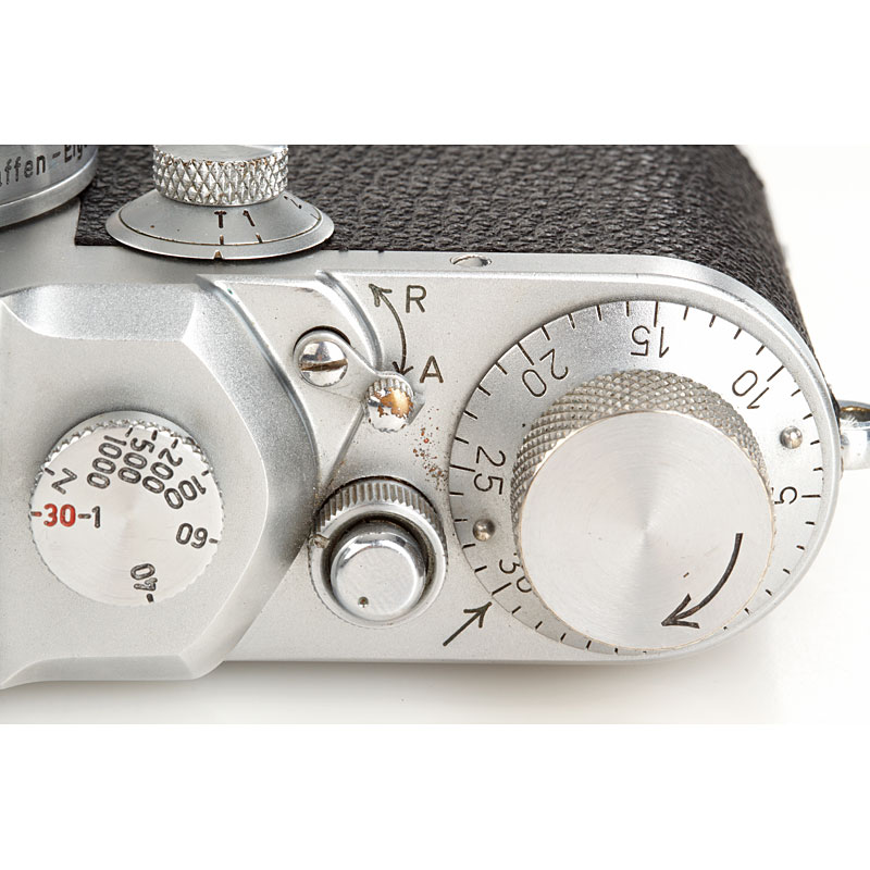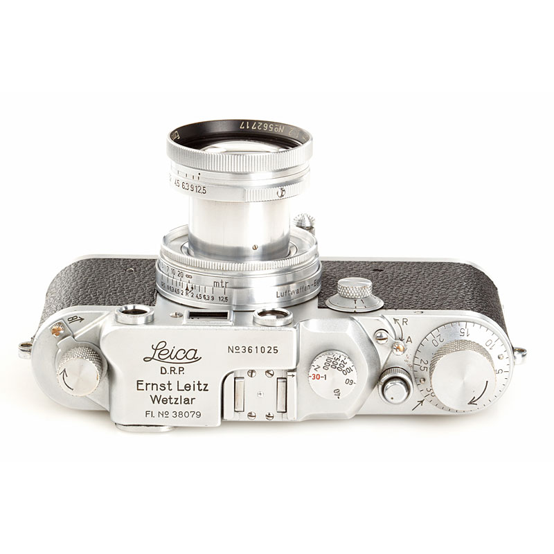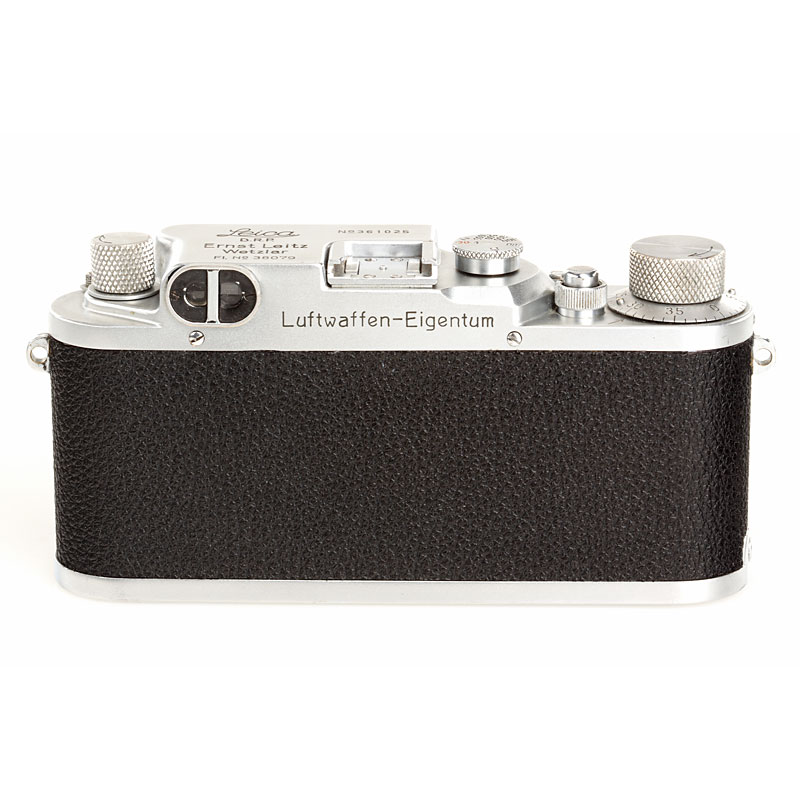 rare and fully original Luftwaffen IIIc, top-plate stylized engraved 'FL.No38079' + 'Luftwaffen-Eigentum', with matching Summitar 2/5cm no.562717 (cap) engraved 'Luftwaffen-Eigentum', camera delivered to Bln. Berlin on August 5th, 1940 (delivery number 9874), Summitar delivered to Bln. Berlin on July 31st, 1941 (delivery number 25807)