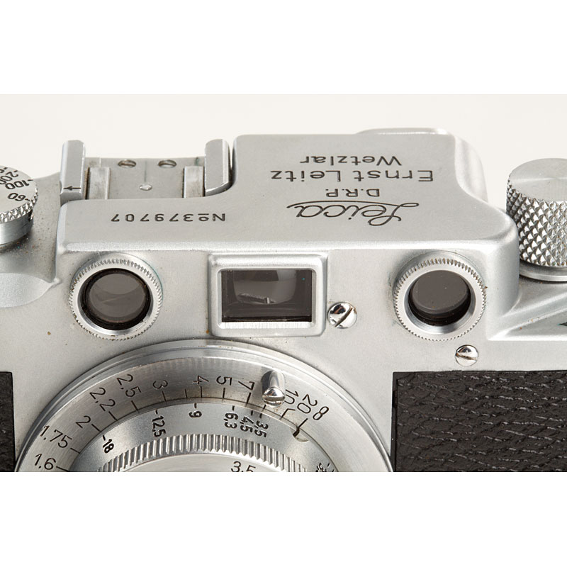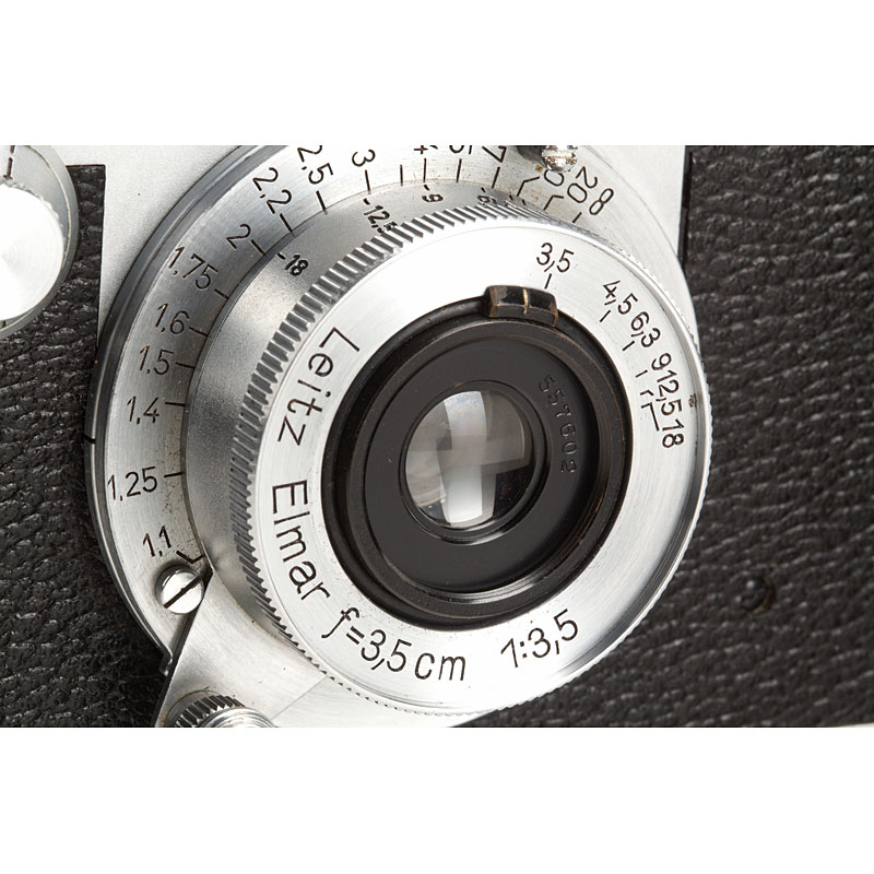 military outfit in very fine condition, clean body with chrome EKURZ Elmar 3.5/3.5cm no.557602 delivered to BLN Berlin on September 9th,1941 (delivery number 25964), with very rare chrome MOOLY-C no.5133 delivered to BLN Berlin on August 19th,1942 (delivery number 29801)
