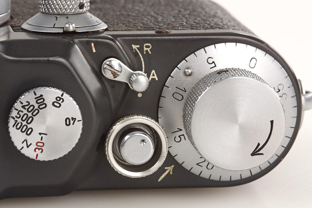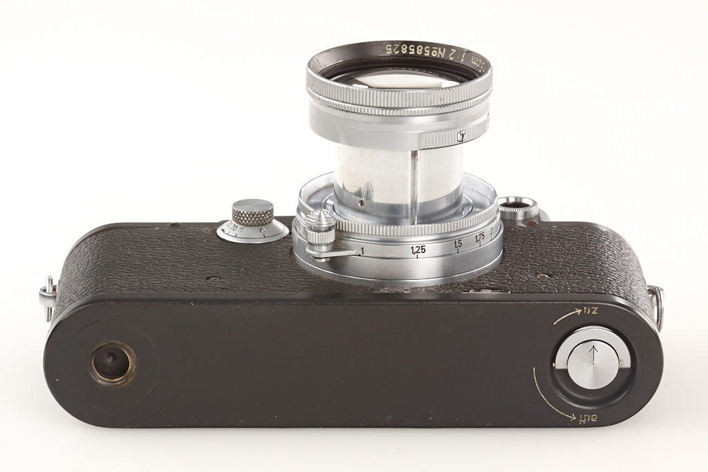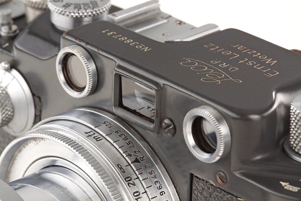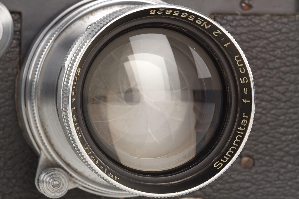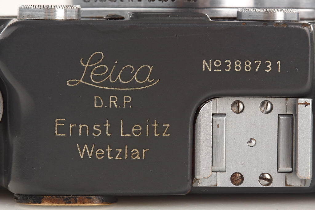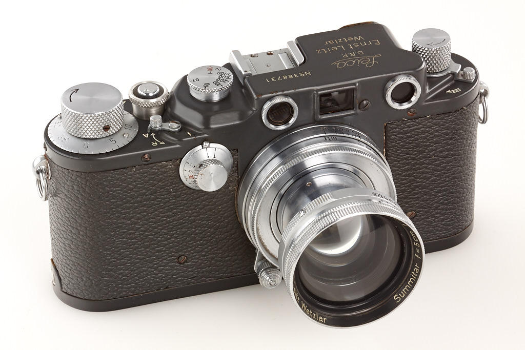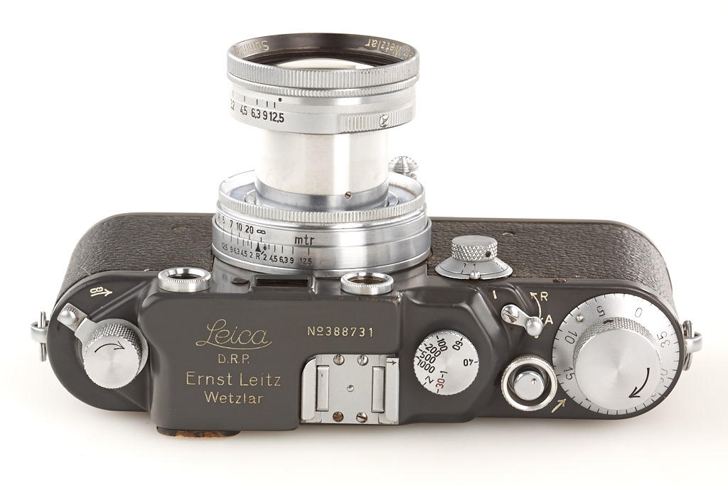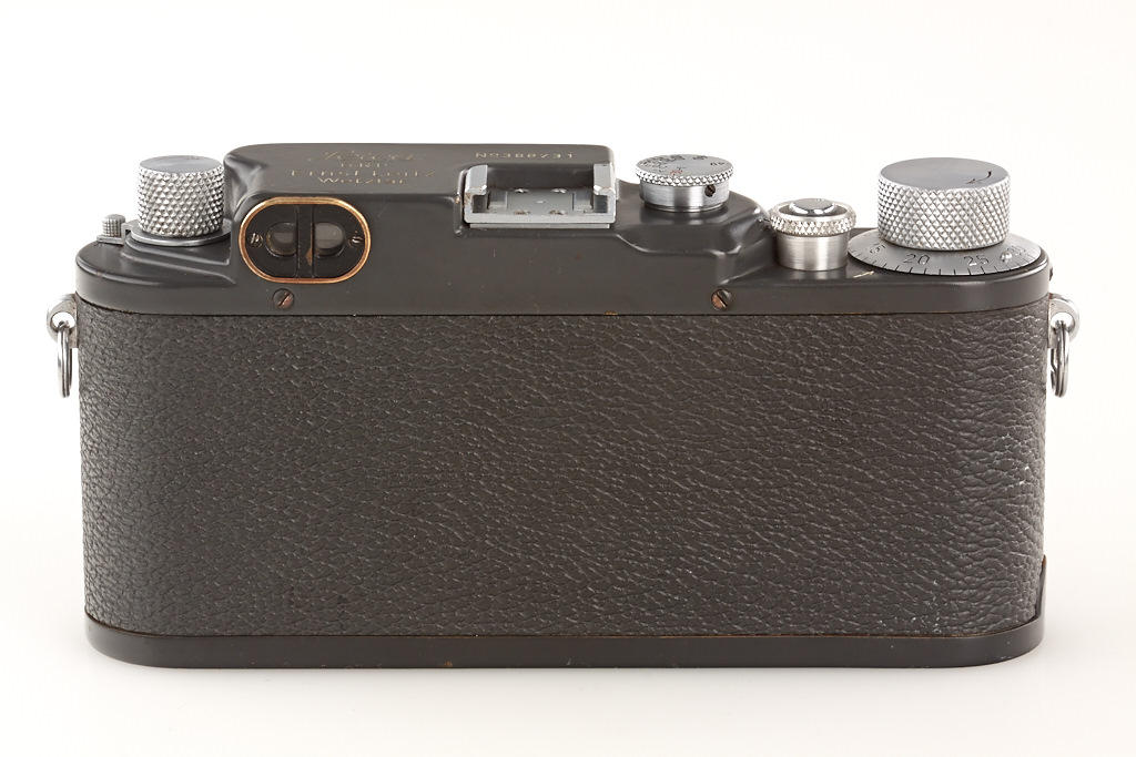 100% original, never restored or repainted grey IIIc (LOOZS grey) with grey leather covering (small part missing on front), red shutter blind, matching Summitar 2/5cm no.585825, grey painted cap and grey everready case (broken front)