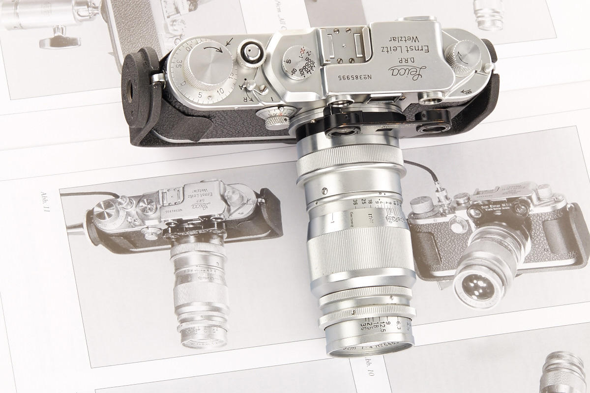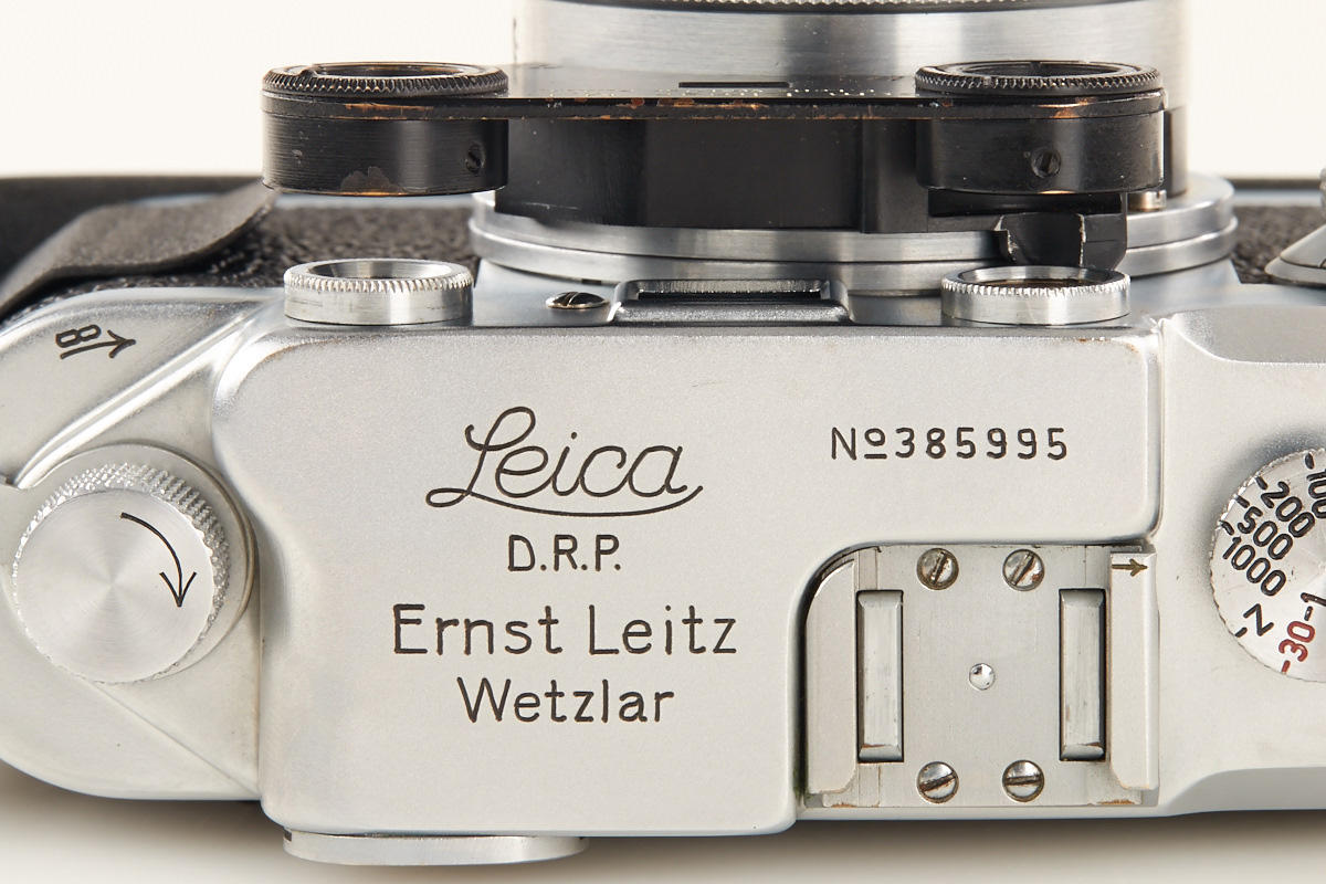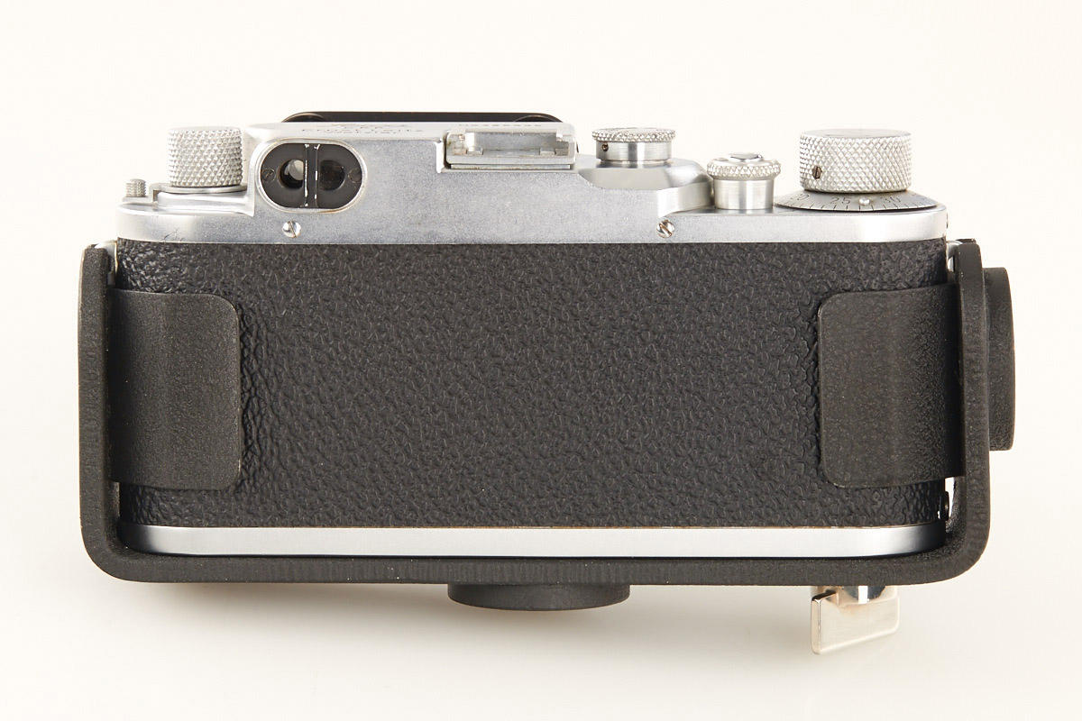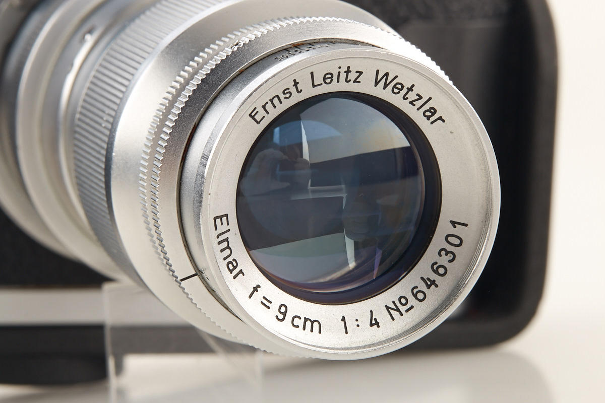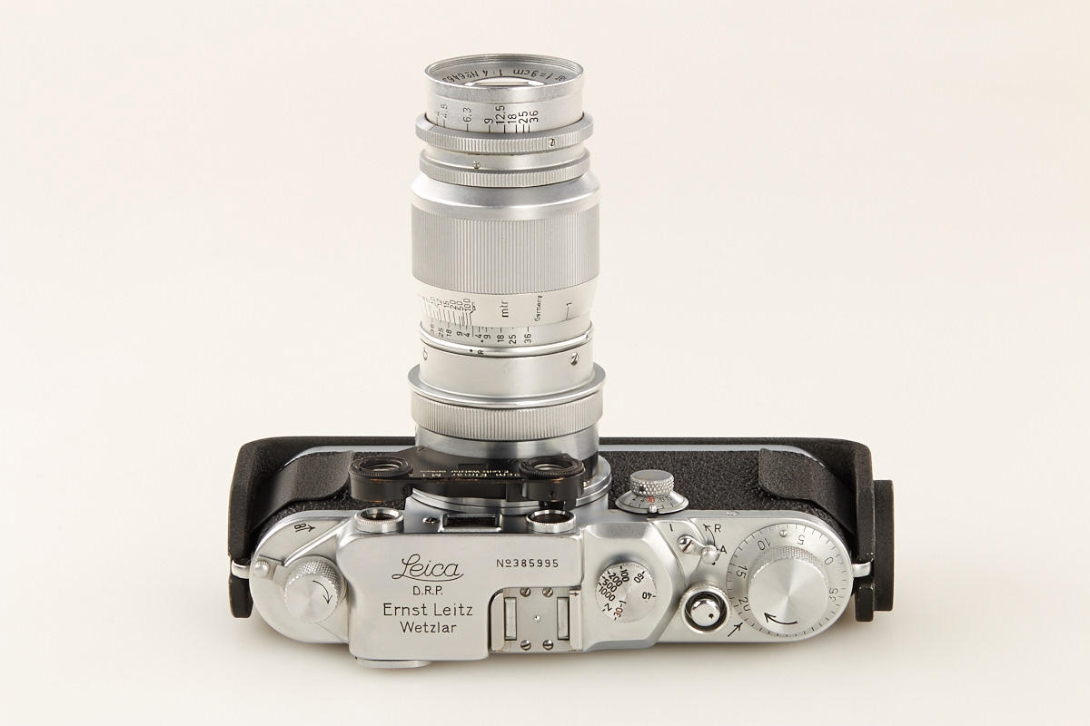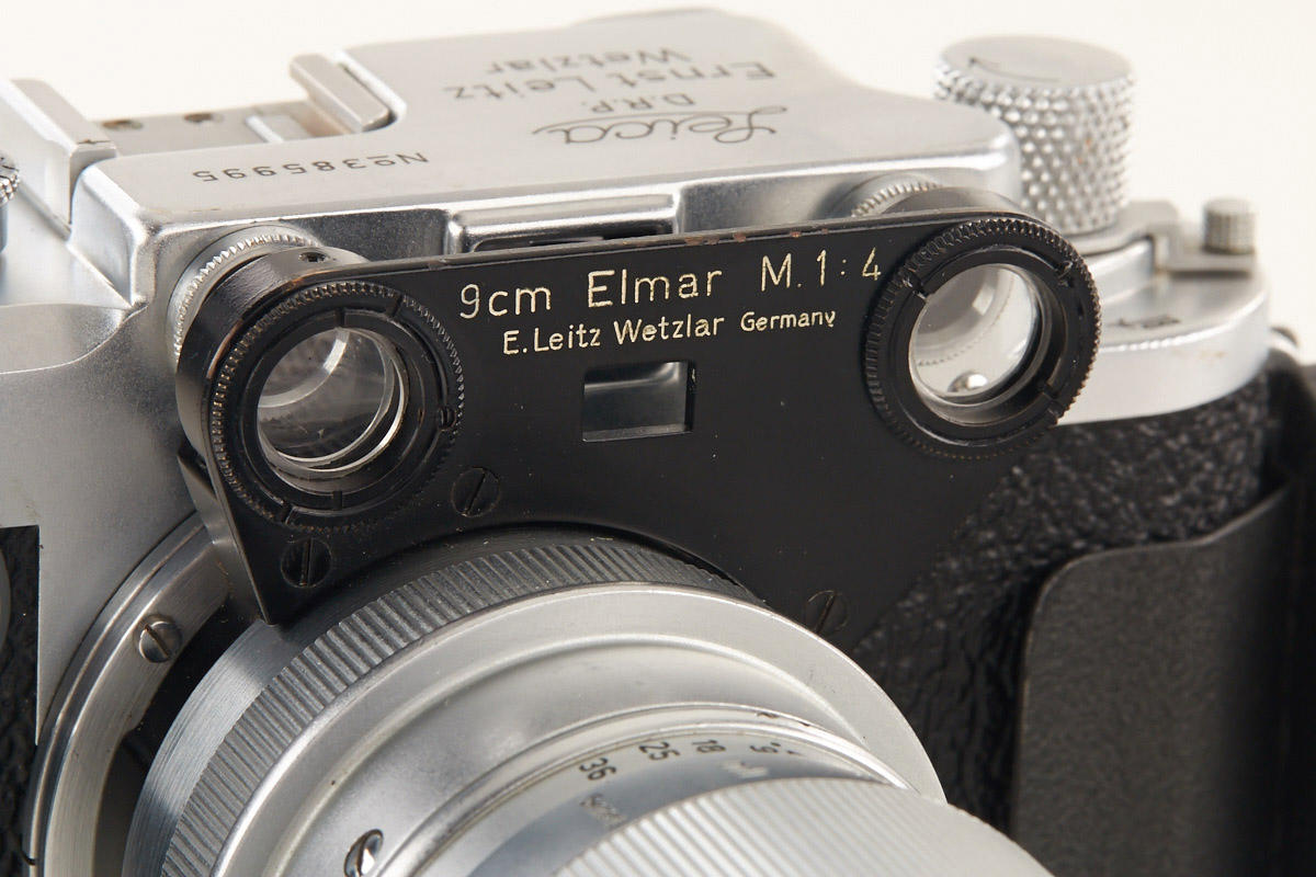 war-time body in good working order with all-chrome Elmar 4/9cm no.646301 and rare OMIFO close-focusing accessory mounted in very rare and fully original Leitz tripod adapter, an original Leitz device made for IIIc and IIId - exactly this outfit is illustrated in VIDOM 89 p.18-21, ex Bawendi collection