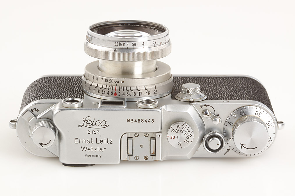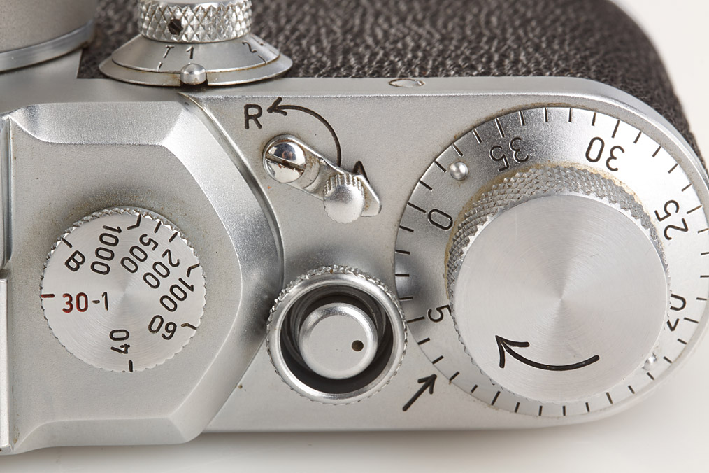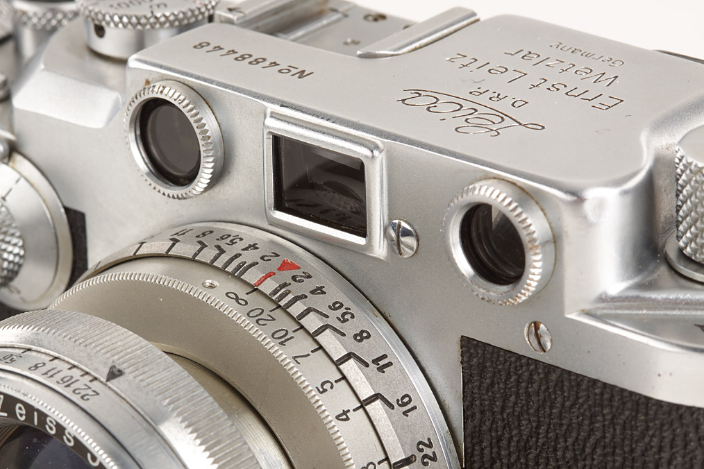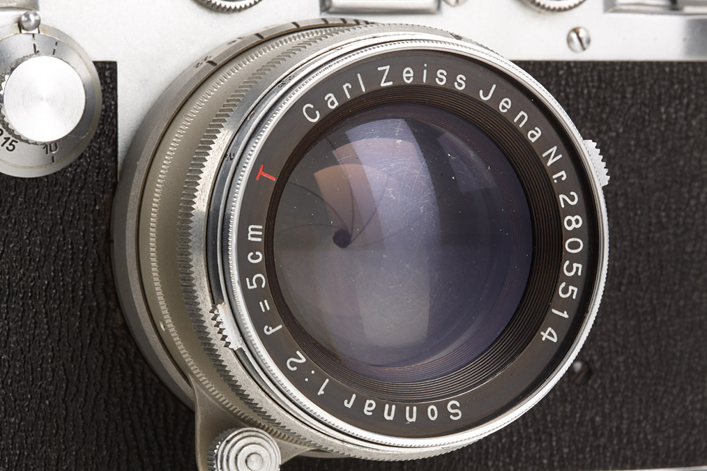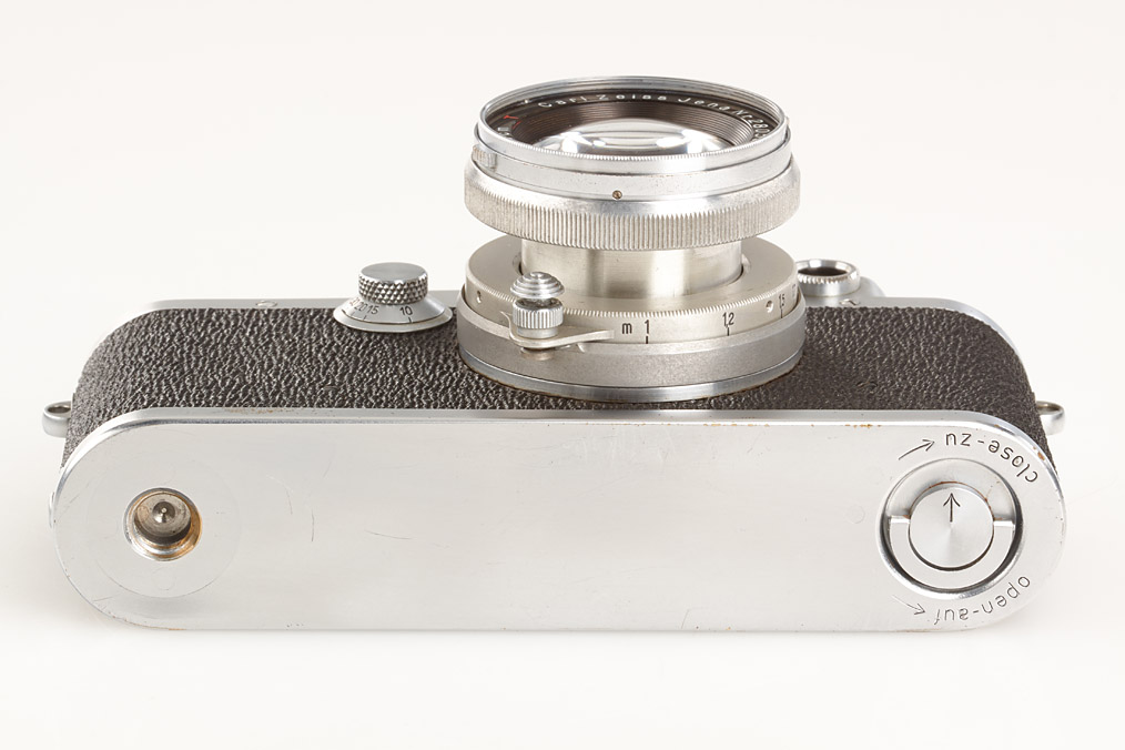 early post-war body with shark-skin covering in fine condition with Carl Zeiss Jena Sonnar 2/5cm T no.2805514 in RF coupled M39 screw mount (some cleaning marks)