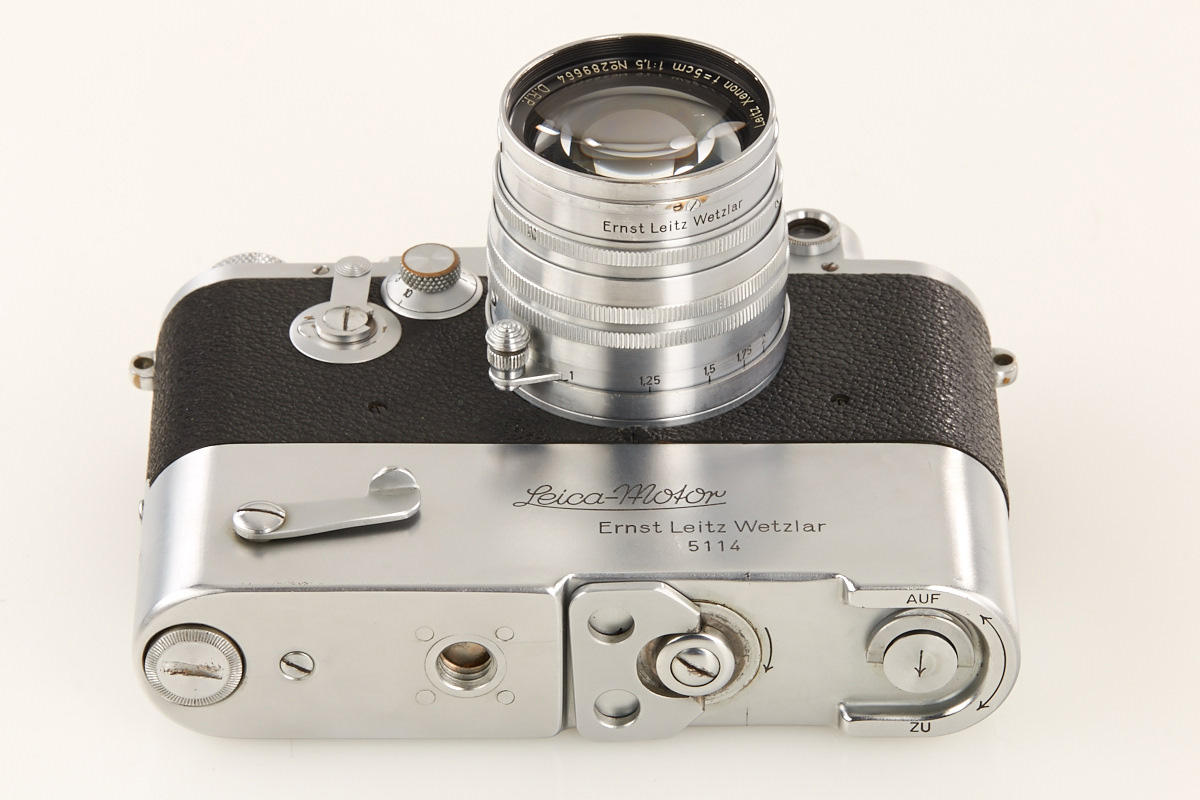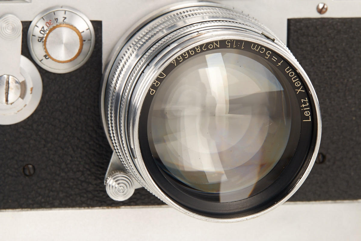 in fully original condition with very rare chrome MOOLY-C no.5114 and uncoated Xenon 1.5/5cm no.289664 (cap), spare base plate, the IIId was the first Leica with self timer, only 427 cameras were produced between 1940-1945 - few are still in existence - ex. Bawendi collection
