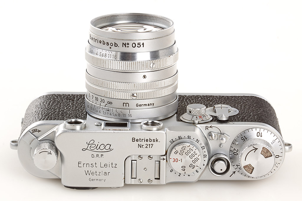 Leica IIIf 'Betriebskamera' (for internal use), fully original, with self-timer, black dial, with Summarit 1.5/5cm without name or type engravings, barrel marked 'Betriebsob. No 051'