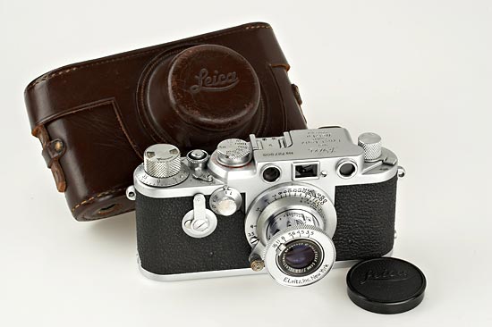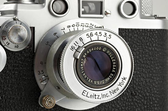 rare IIIf (red dial, self timer) with typical Canada serial number engraving, WESTON film-speed indicator on winding knob, "open-auf close-zu" engravings on the base plate, case stamped "E. Leitz New York", with Wollensak Velostigmat 3.5/50mm no.454000, cap, in perfect working condition