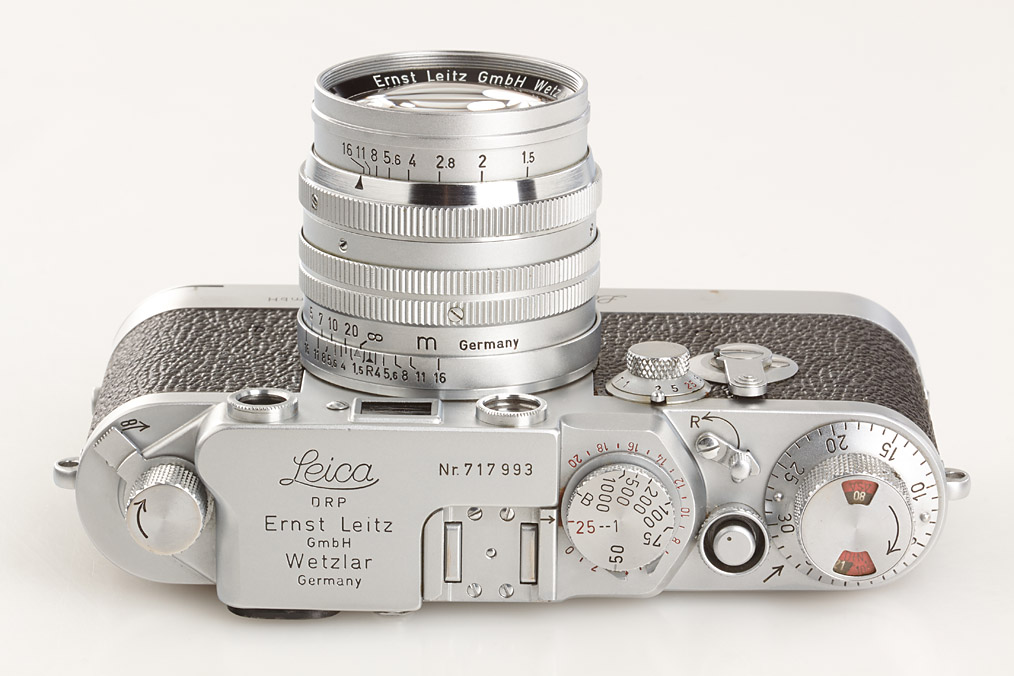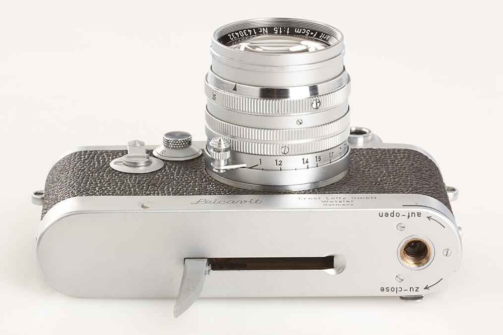 clean body in good working order with Leicavit SYOOM (cond. B+), base plate, Summarit 1.5/5cm no.1430432 (XOONS hood, cap)