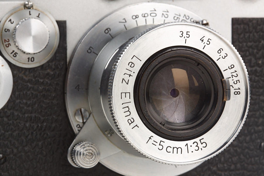 body in very fine condition and good working order with Elmar 3.5/5cm no.200341 (FISON hood, cap)