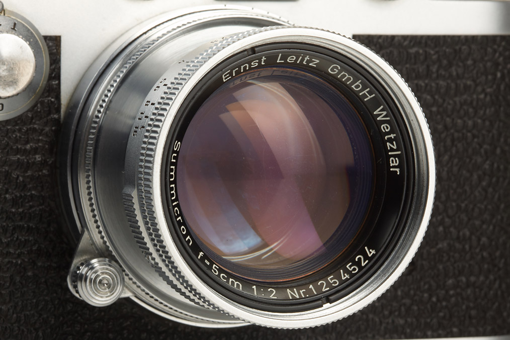 body in good working order with Summicron 2/5cm no.1254524, caps, ITDOO hood, everready case, instruction book, red/golden inspections card (not matching), red maker's box
