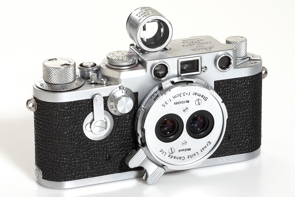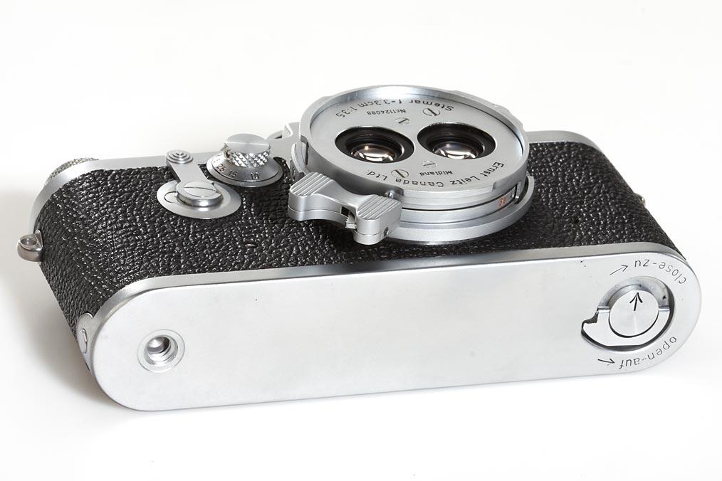 unnumbered IIIf with selftimer in mint condition, mint stereo outfit OIRZO with Stemar 3.5/3.3cm no.1124088, prism no.1121, stereo finder OIDYO, hood OIGEO, cap, red maker's stereo box