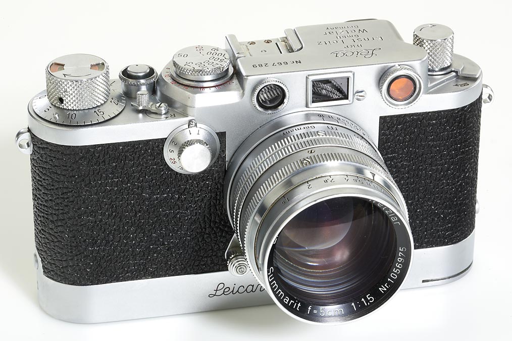 red dial body with matching Summarit 1.5/5cm no.1056975, Summaron 3.5/3.5cm no.1058688, 3.5cm finder SBLOO, Elmar 4/9cm no.1382227, caps, SYOOM Leicavit, OKARO - all in fine condition