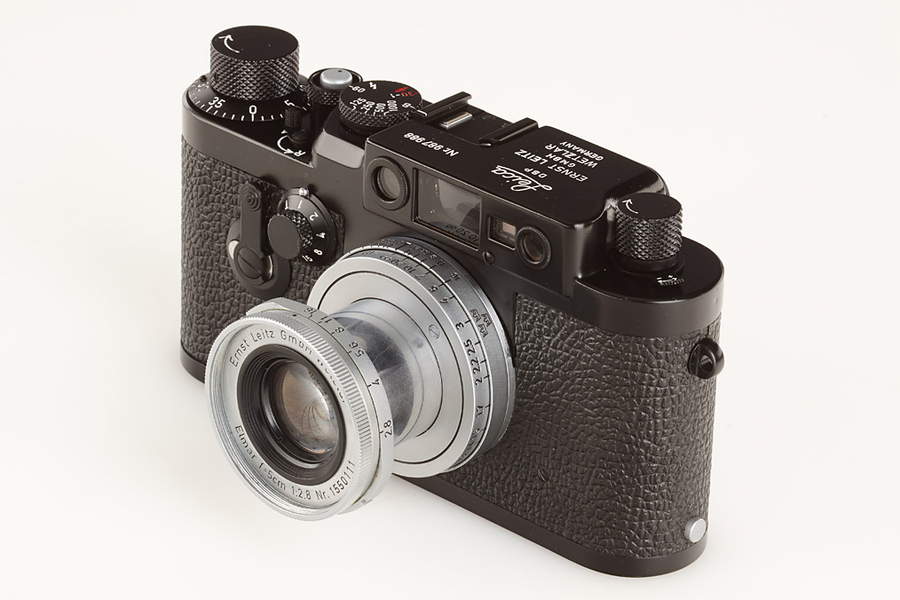 very well made copy of the black IIIg with matching 3-crown Elmar 2.8/5cm no.1550111 (cap), serial number of camera from original black IIIg