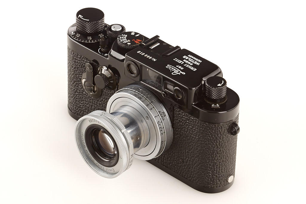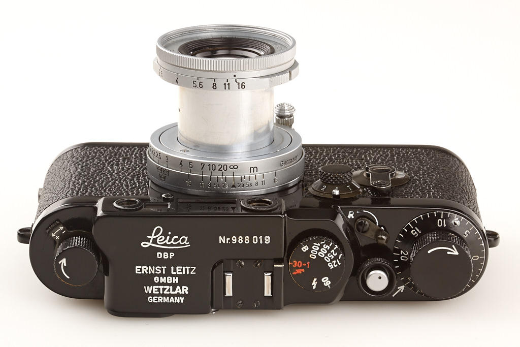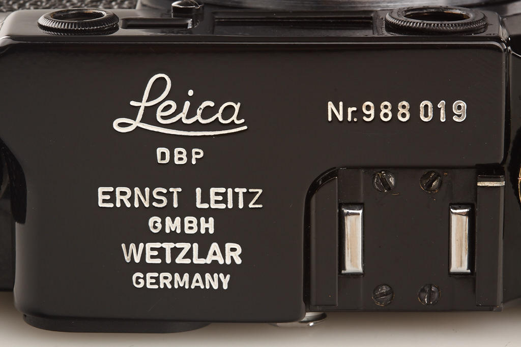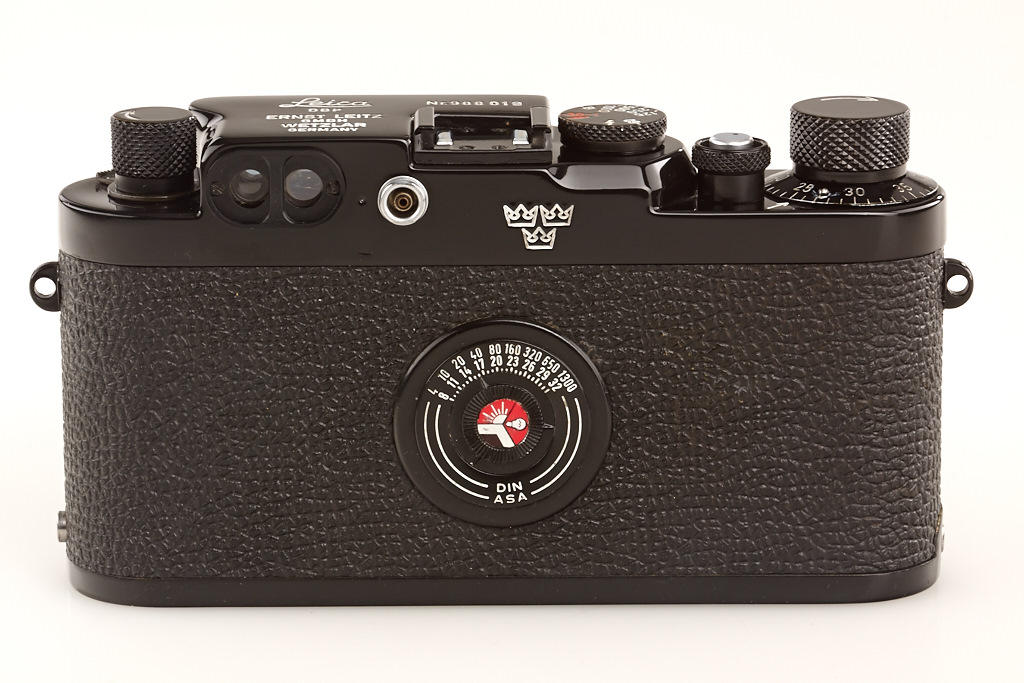 according to Ottmar Michaely the camera is made from original Leitz parts, still another IIIg with same serial number, delivered to Sweden is located in a Swedish collection, engraved with 3 crowns, Elmar 2.8/5cm no.1540288 (cap), instruction book