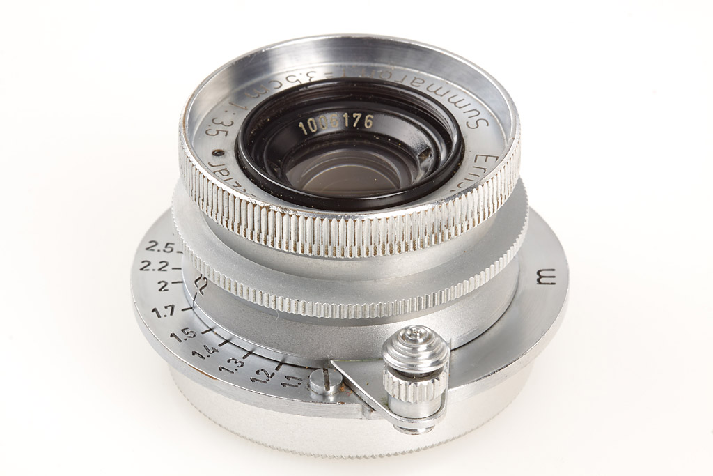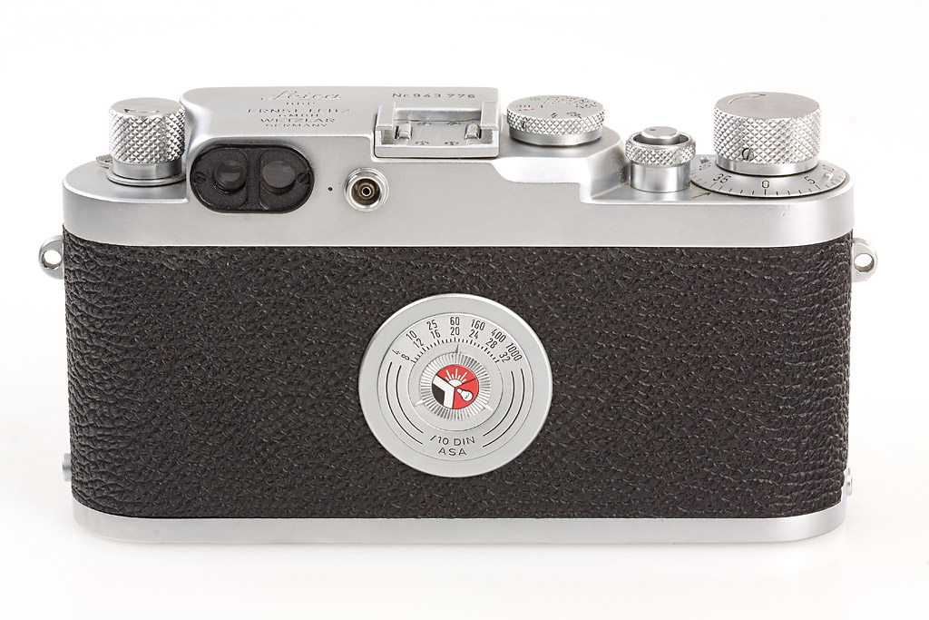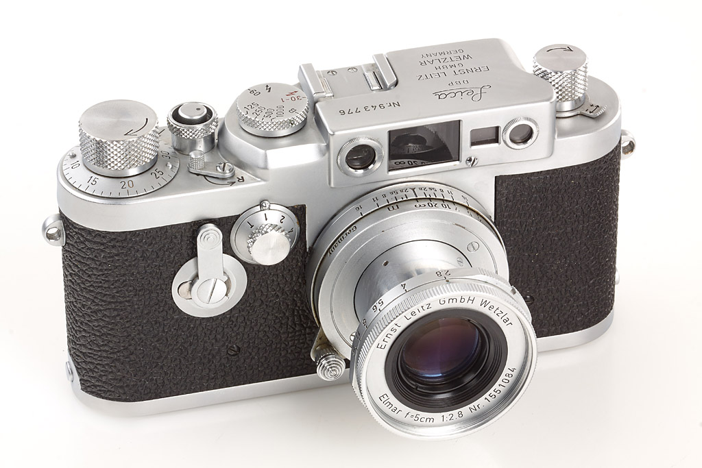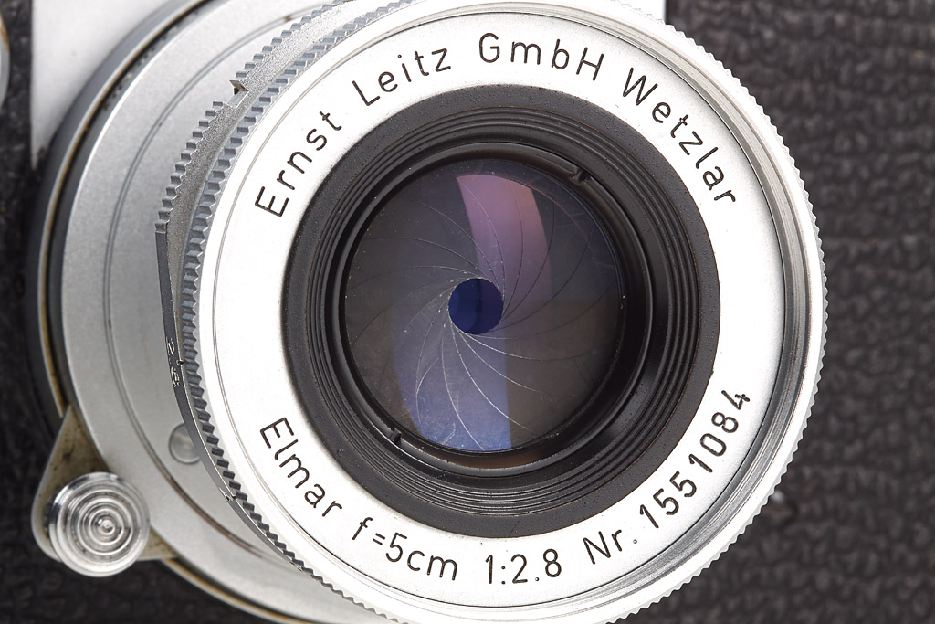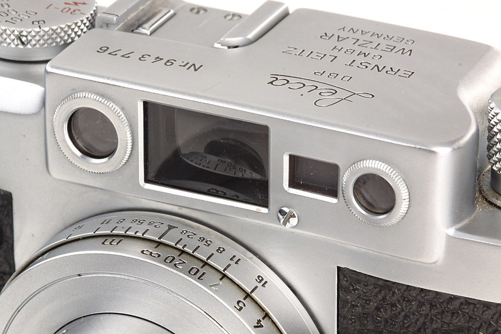 body in fine condition and good working order with Elmar 2.8/5cm no.1551084 (good lenses, cap, everready case), A36 Summaron 3.5/3.5cm no.1006176 (caps, slightly hazy, FOOKH hood) and 3.5cm SBLOO BL finder