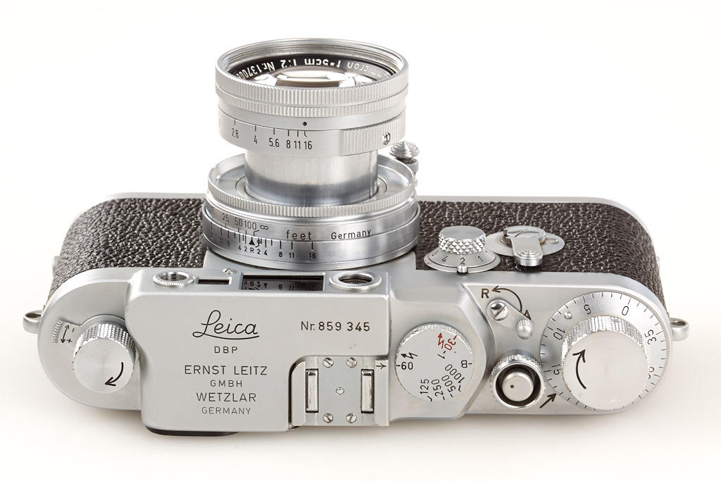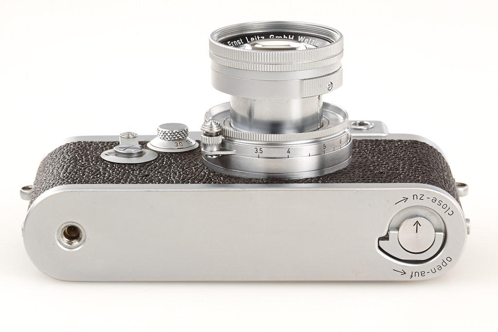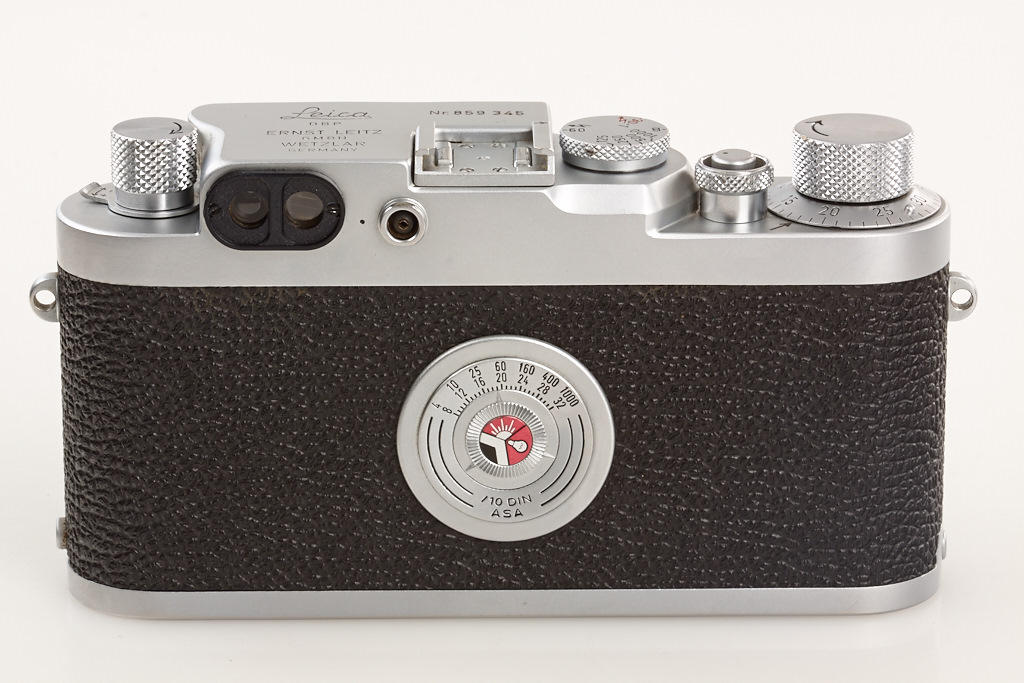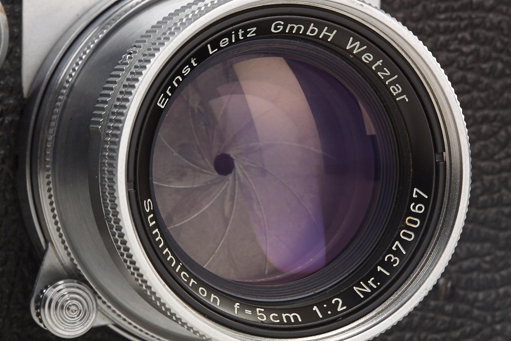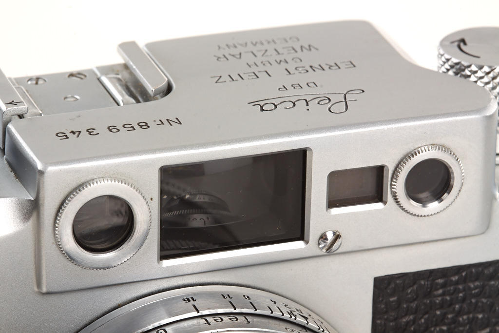 body in very fine condition and good working order with coll. Summicron 2/5cm no.1370067 (good lenses, cap), everready case, custom registry card with matching number (dated 1958), instructions, Hrvex exposure meter (not operable), including mint Leicavit SYOOM in red maker's box