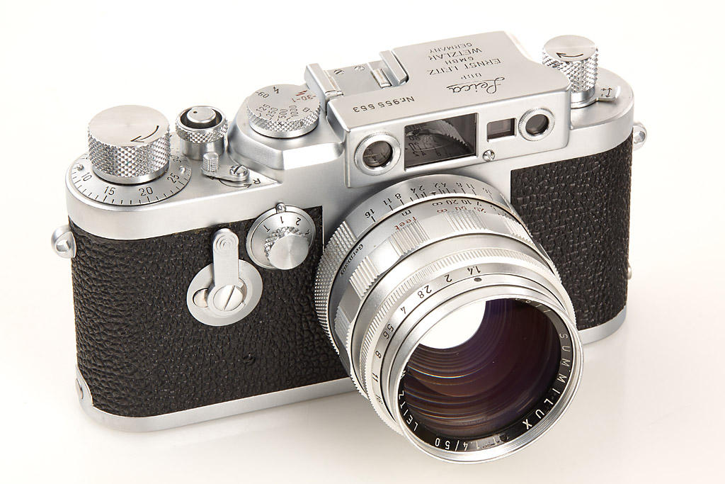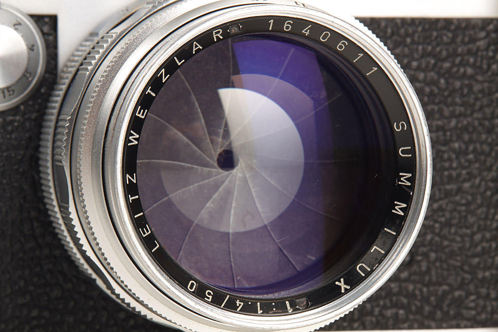 mint IIIg body in perfect working order with perfect and rare Summilux 1.4/50mm no.1640611 (very early Summilux from 1958 - 11th lens produced, cap), case, red/gold control card, instructions and maker's box with matching number