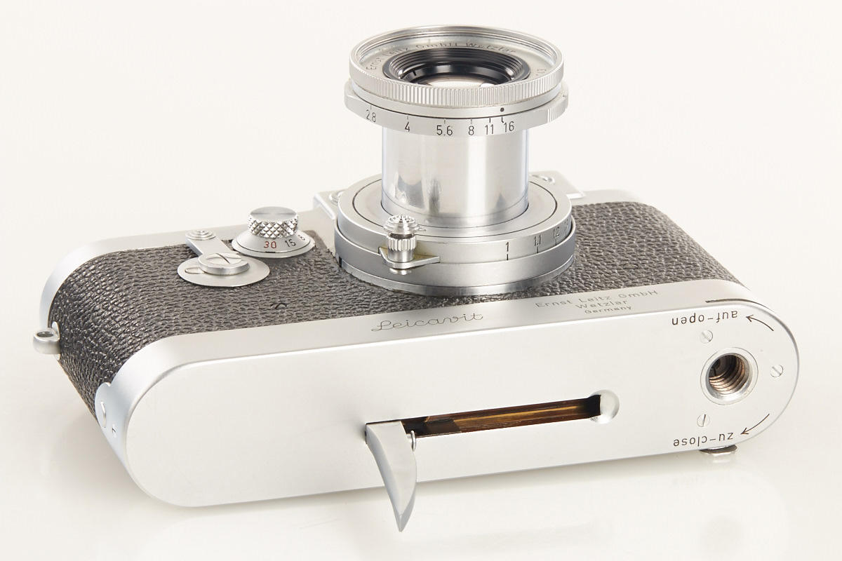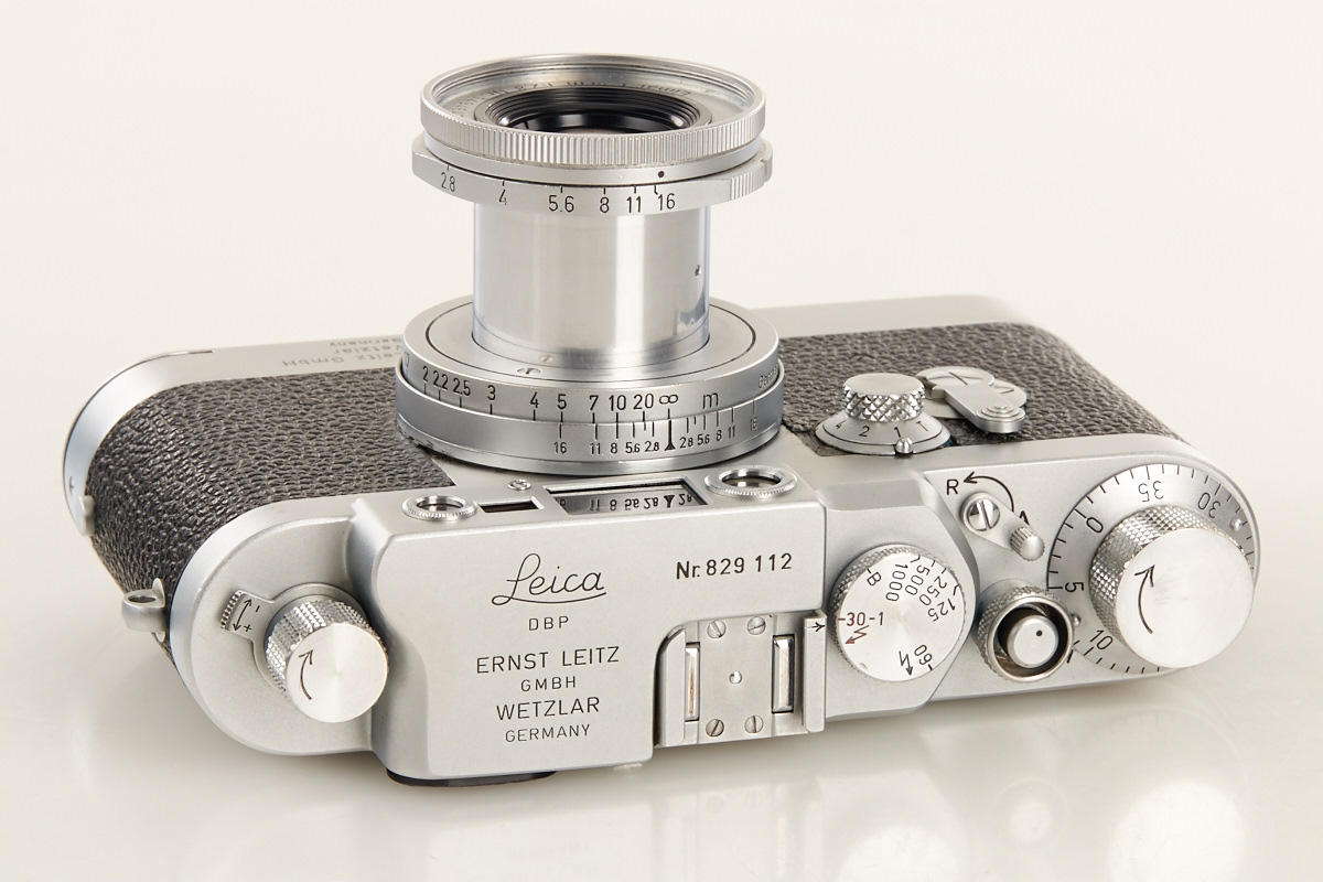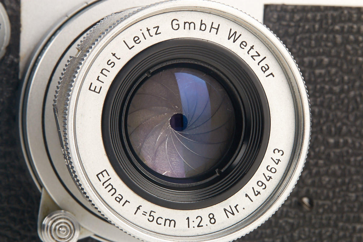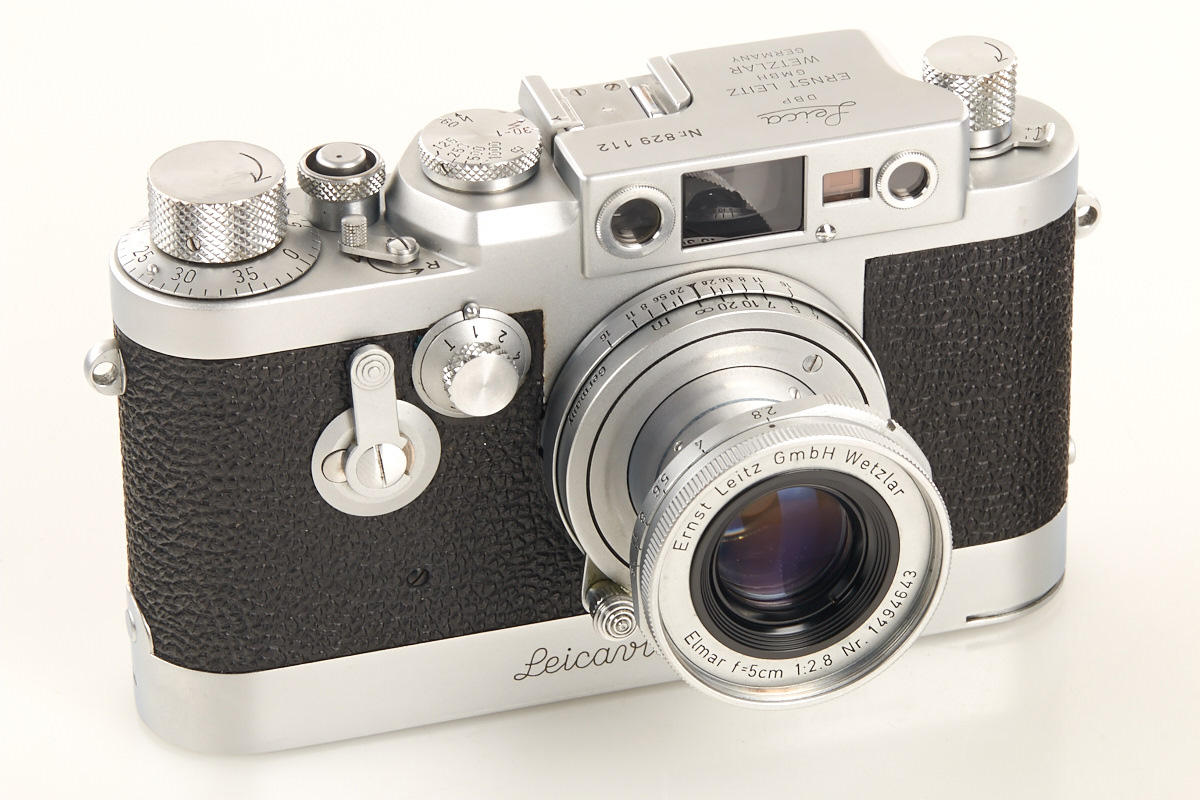 early body in perfect working order with Leicavit SYOOM (red maker's box), regular base plate, Elmar 2.8/5cm no.1494643 (cap), Wetzlar Summaron 2.8/35mm no.1678486 (caps), Elmarit 2.8/90mm no.1683316 (caps), Elmar 4/135mm no.1733130 (caps), VIOOH universal finder no.86335 (cond. B)
