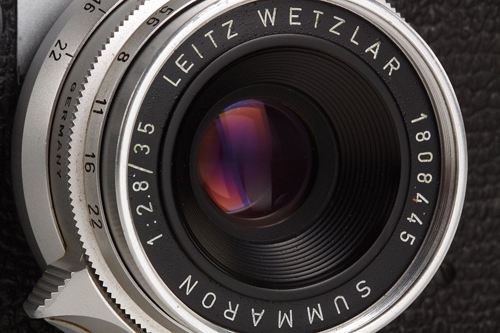 body in near mint condition with Wetzlar Summaron 2.8/35mm no.1808445 (clean lenses, orange filter, cap) and VIOOH universal finder with straight sides no.82401