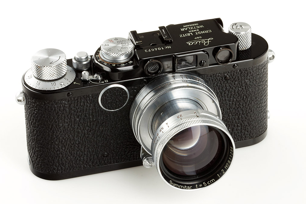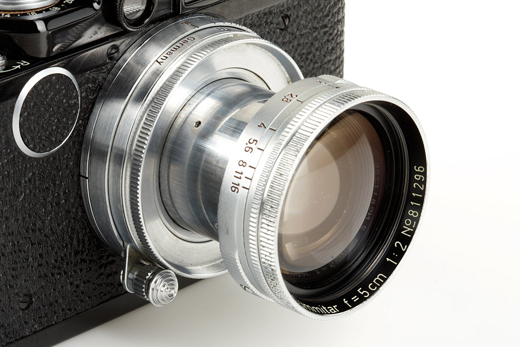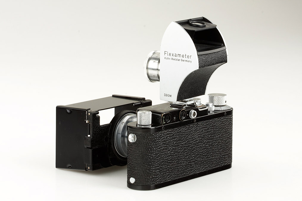 rare conversion of a Standard into IIf black with chrome fittings, converted around 1950, in excellent condition, Summitar 2/5cm no.811296, SOOPD hood, with Kühn-Wetzlar Flexameter in near mint condition