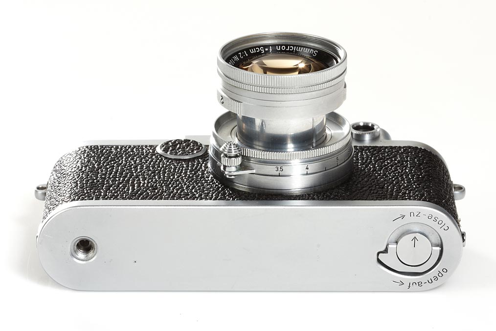 body in fine and perfect working condition, small part of leather missing, Summicron 2/5cm no.1043297, cap, everready case