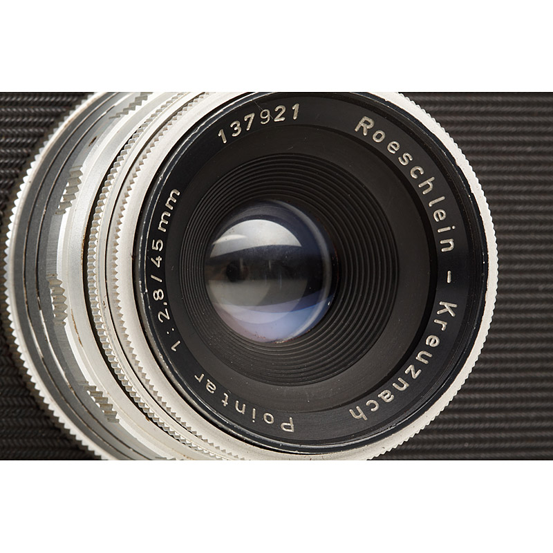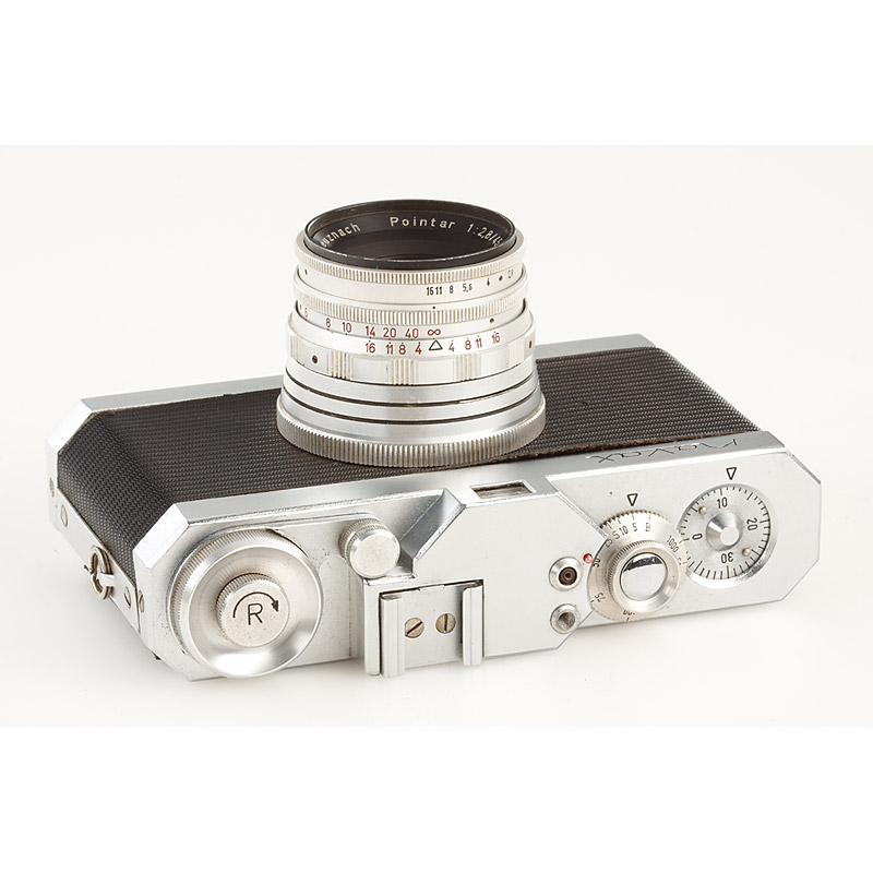 very rare German 35mm viewfinder camera in near mint condition with matching Pointar 2.8/45mm no.137921, shutter working, everready case