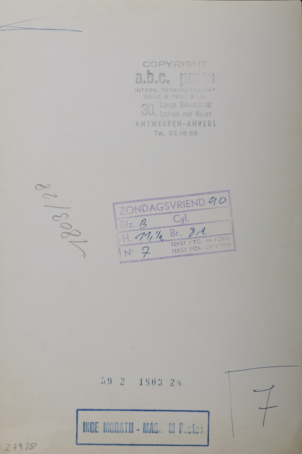 Vintage silver print 25 x 16,6 cm Photographer's agency stamp, “a.b.c. press” stamp, “Zondagsvriend” stamp and numerical stamp on the reverse