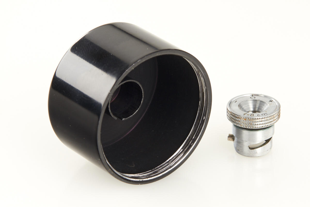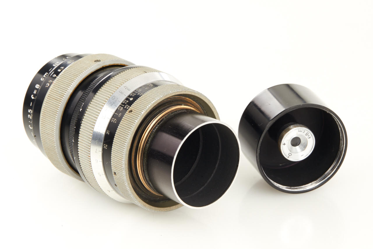 very rare tele in screw mount for ISO/Hensoldt Reporter or Standard, original rear cap containing the 8cm viewfinder attachment, front cap - in perfect condition
