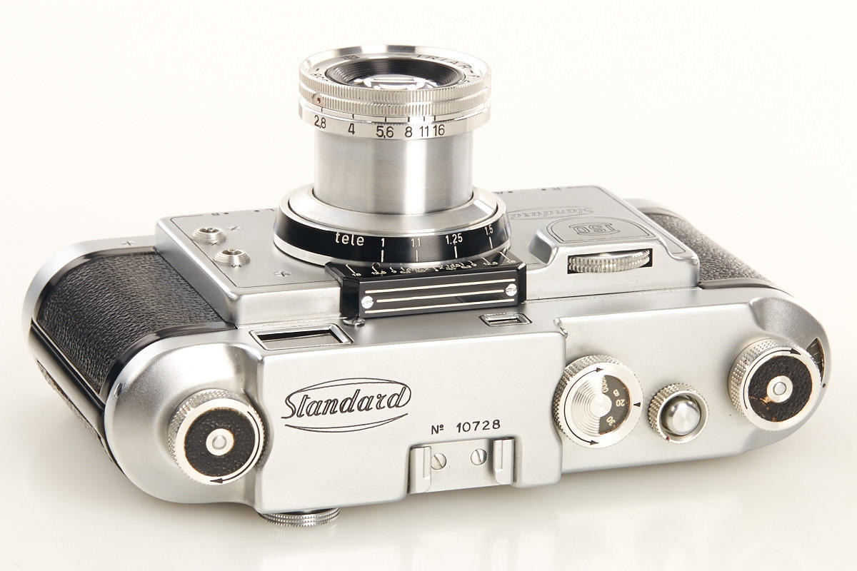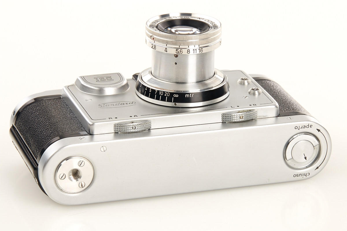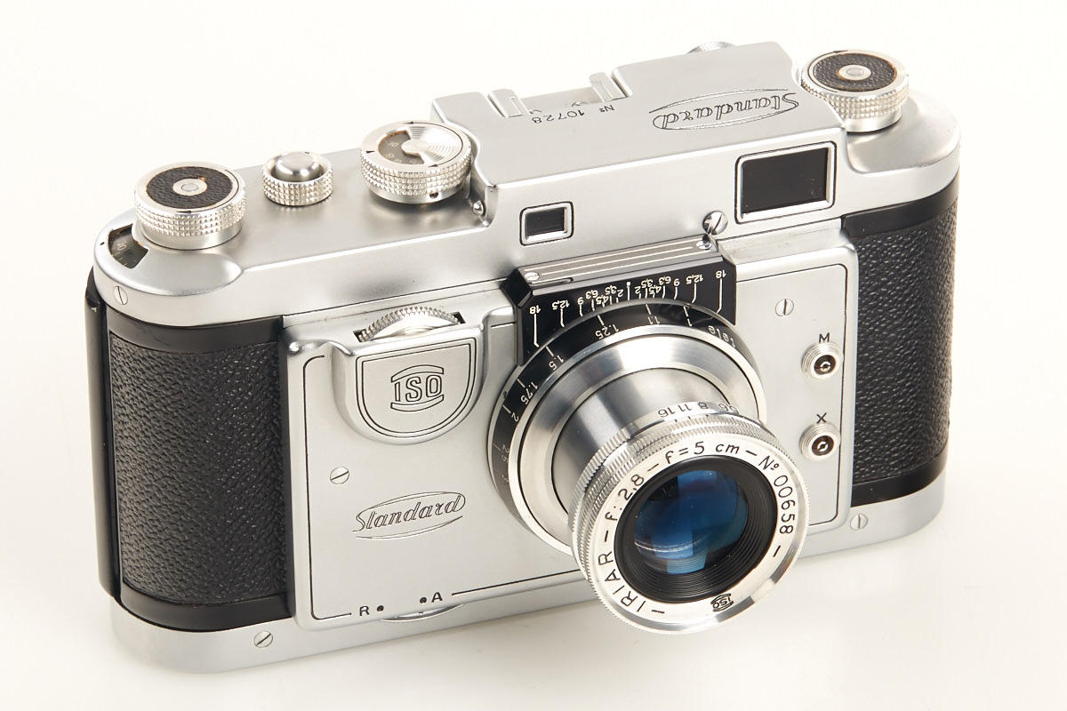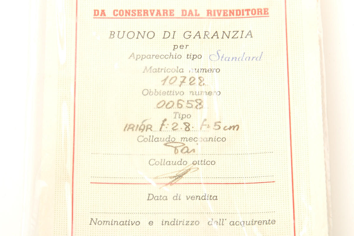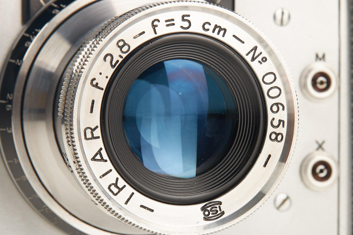in mint original condition with Iriar 2.8/5cm no.00658, original cap, sealed warranty card with matching numbers, instruction book in shape of the camera and maker's box