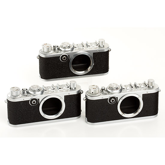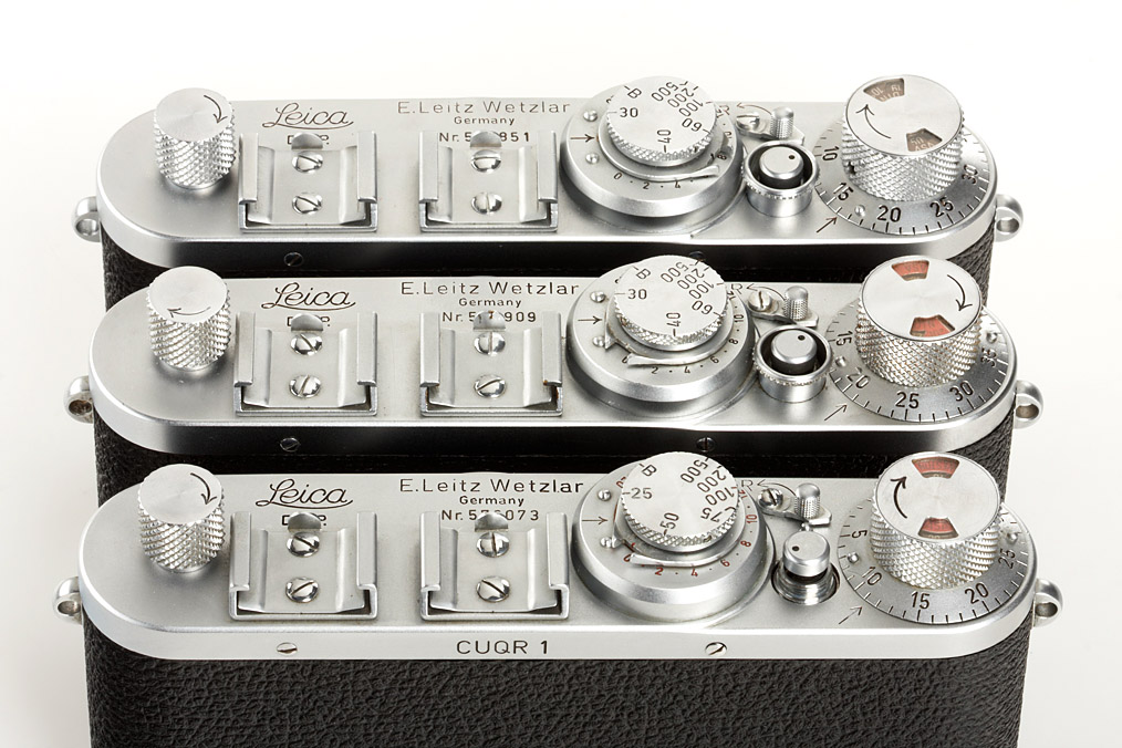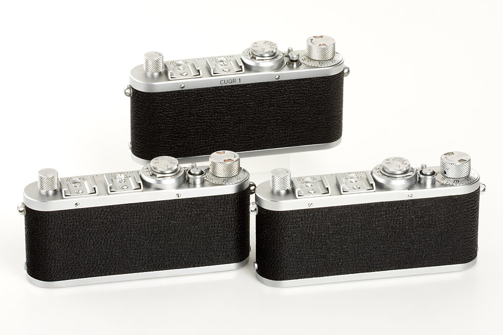 (1) black dial body no.563851 in near mint condition, (2) black dial body no.563909, (3) red dial body no.576073 (engraved on rear of top plate: 'CUQR 1'), (3)