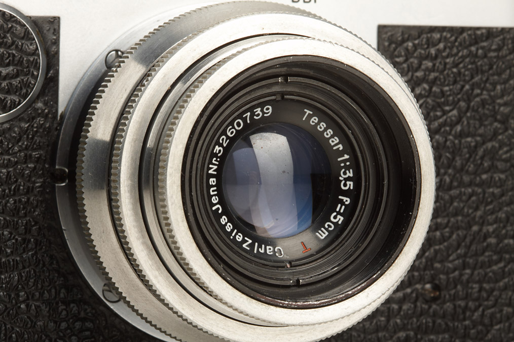 special version of Ig produced for Reprovit use, without slow speeds and flash synchronisation, in good working condition, Tessar 3.5/5cm T no.3260739 for M42 with M39 adapter, cap