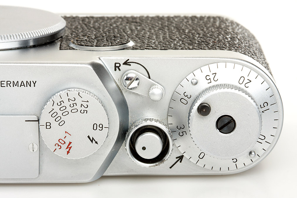 rare modified Ig for use in Siemens electron microscopes (without accessory shoe, strap lugs, synchronization are removed), modified wind knob with drive pin, cap