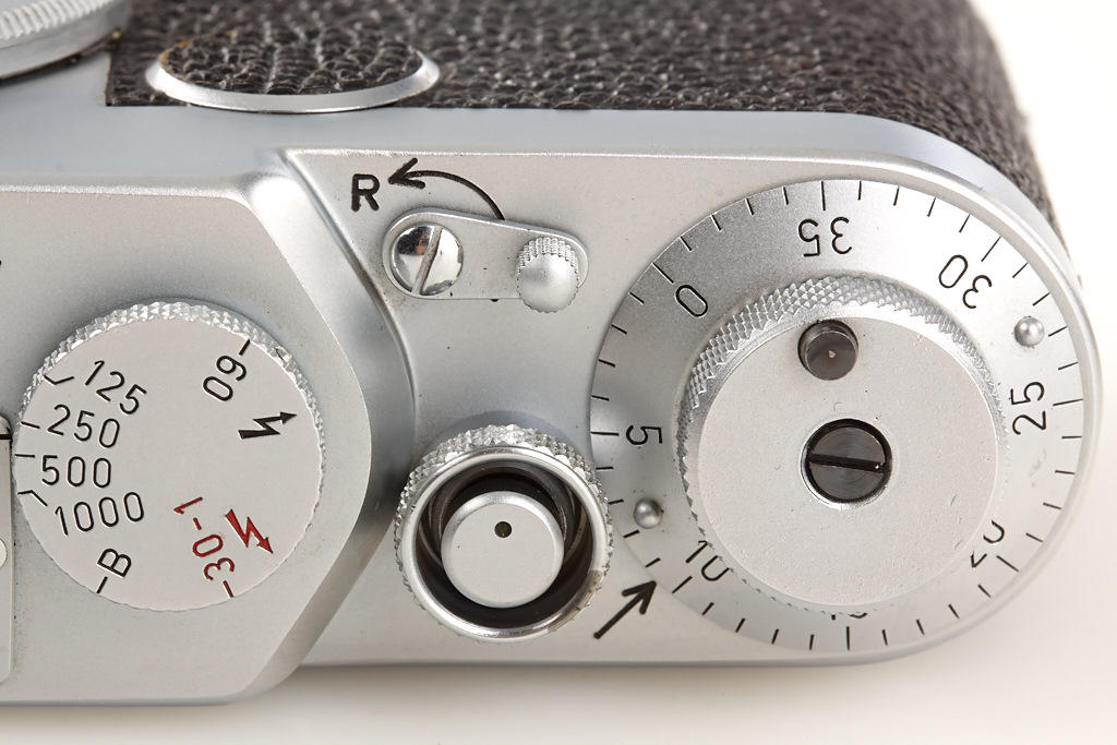 rare modified Ig for use in Siemens electron microscopes (without accessory shoe, strap lugs, synchronization), modified winding knob with drive pin (cap)